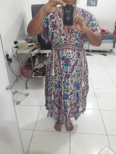 Платье выглядит как ad. Но думаю, что подходит для пляжа. Но все же, нравится. Яркая, легкая ткань, не нагревается, не прозрачный. Размер L подал мне вес 85 кг. куплю больше одежды этого продавца, этого магазина. Быстрая доставка, в месяц к северу от Бразилии. Был доволен. Спасибо!