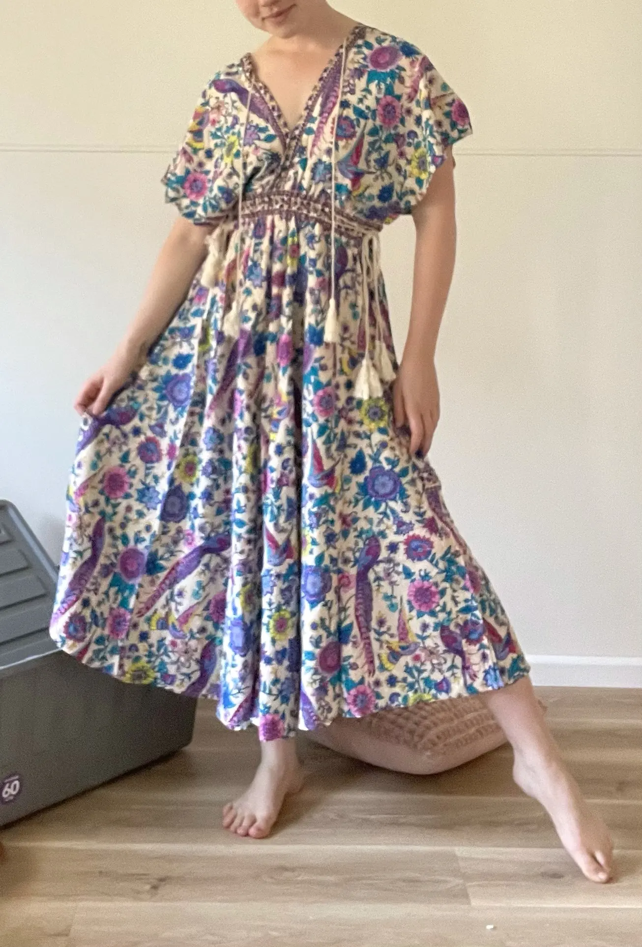 Потрясающее платье. Более высокое качество, чем большинство на этом веб-сайте. :-) цвета глубже, чем на фотографиях и видео. Красиво, красиво, красиво. Размер L подходит мне размер 16, но лучше, если вы, конечно, меньше.