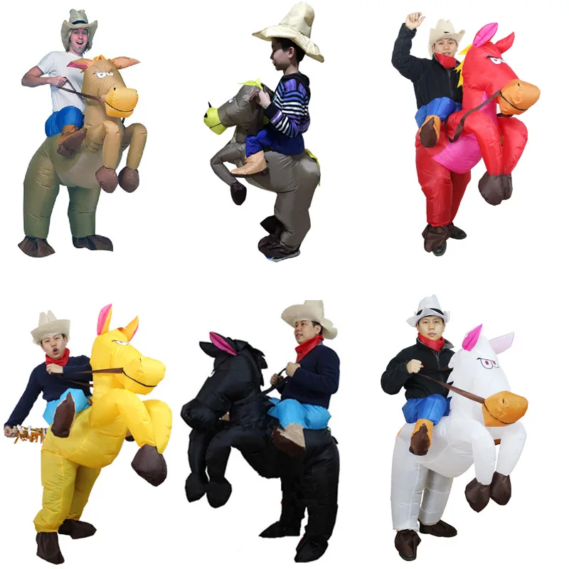 Пурим лошадь костюмы на Хэллоуин для женщинам взрослым мужской дети девочки мальчик наряды надувные Ковбой конная костюмы Косплэй нарядное платье
