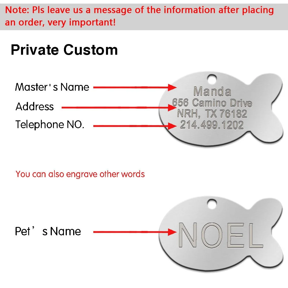 Бирки для собак из нержавеющей стали с гравировкой, милая форма рыбы для питомца, щенка, кошки, высокое качество