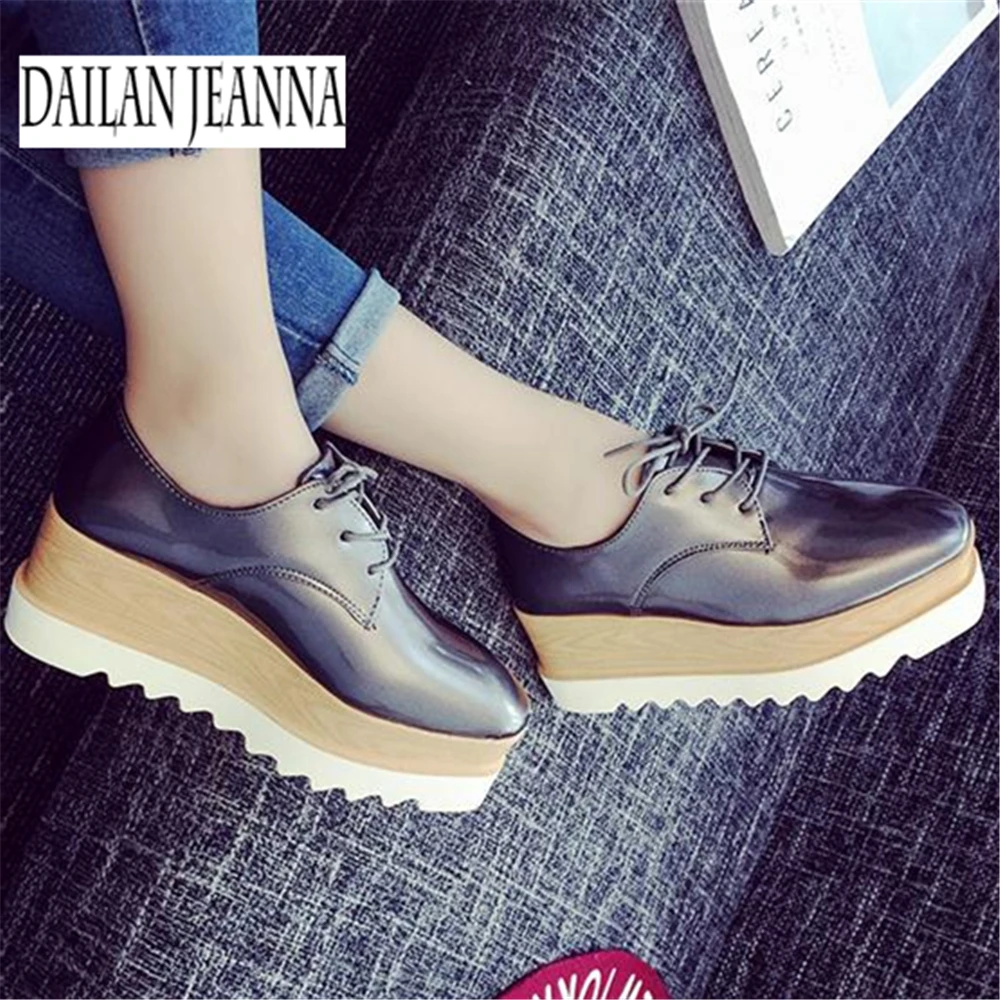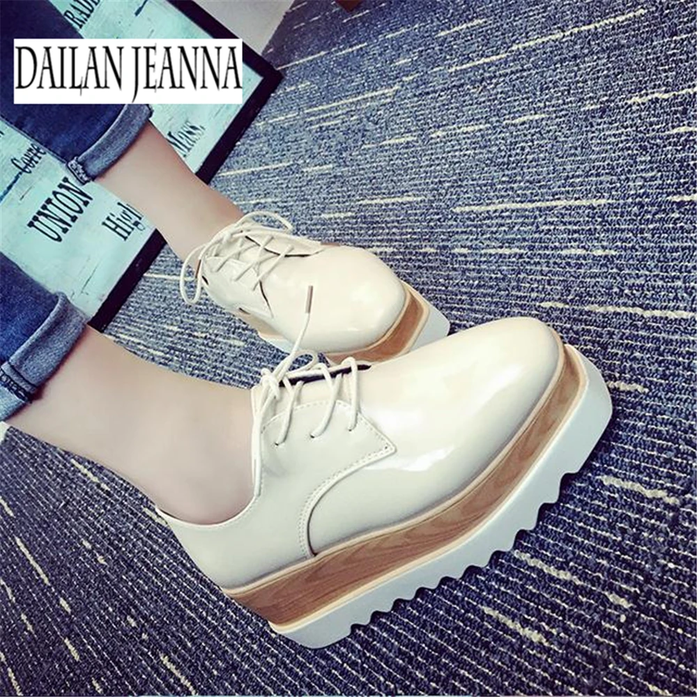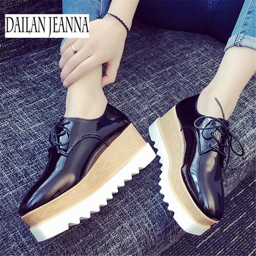 Брендовая Весенняя женская обувь на платформе, женские броги, обувь из лакированной кожи на шнуровке, женские туфли-оксфорды для женщин