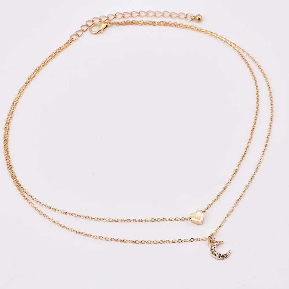 Женское многослойное ожерелье с подвеской в виде сердца и Луны