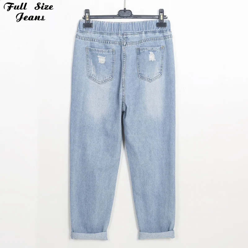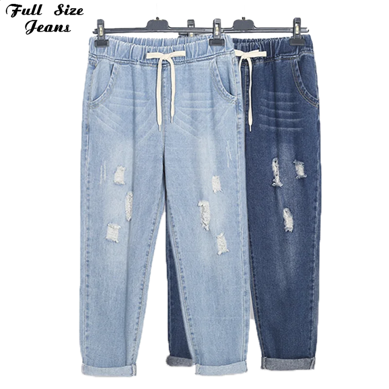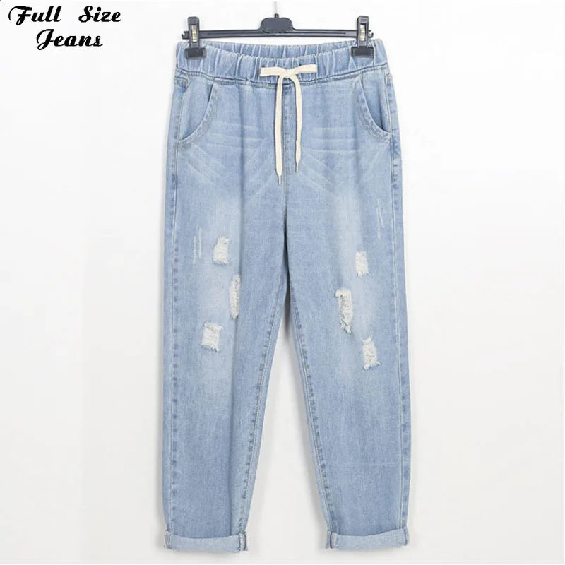 Джинсы размера плюс женские рваные до щиколотки, джинсовые брюки-султанки с эластичным поясом, хлопковые капри в стиле бойфренда, уличная одежда, 4Xl, синие