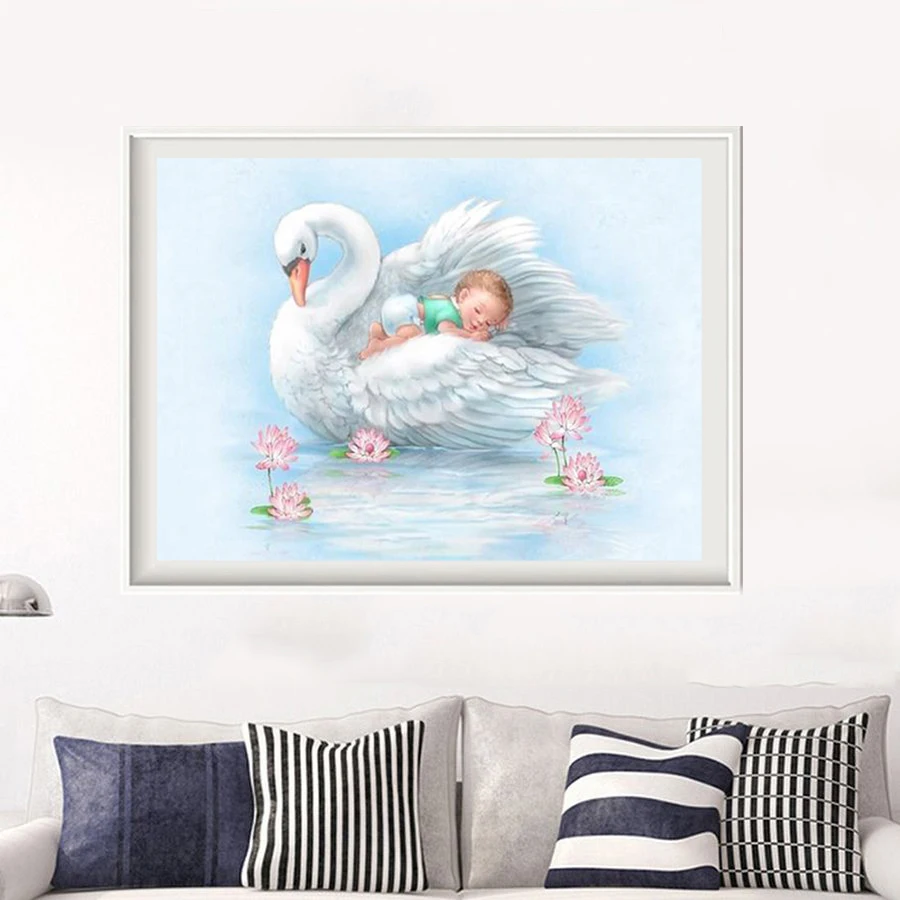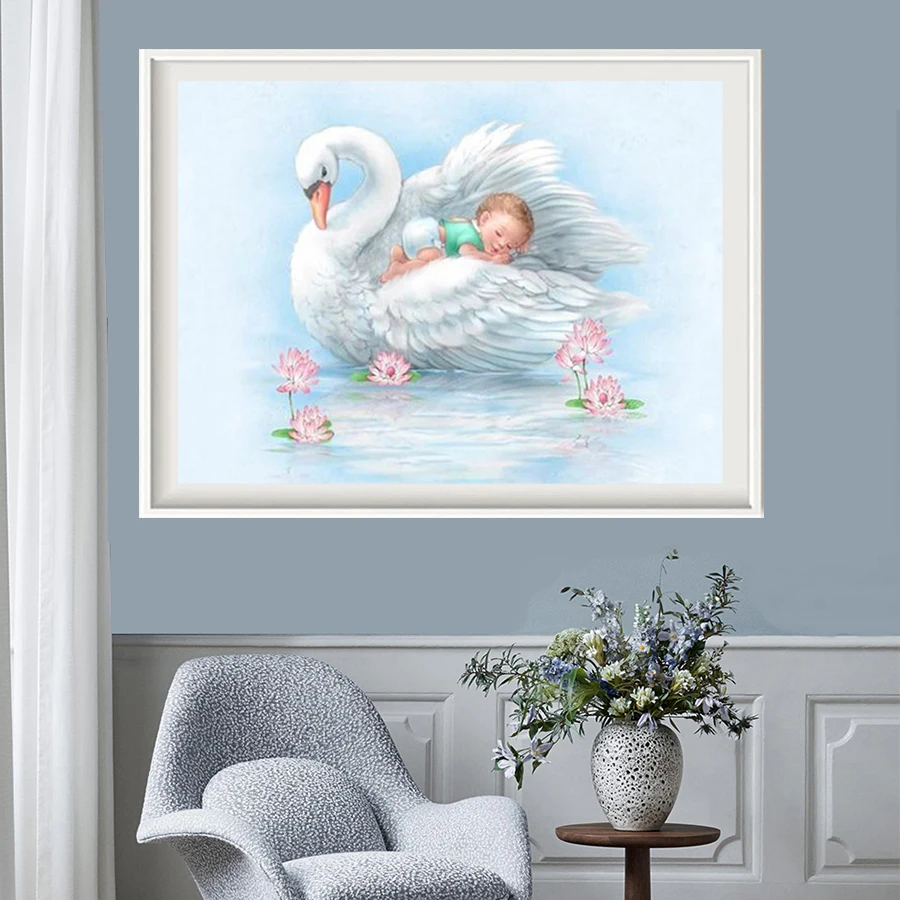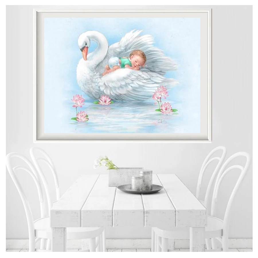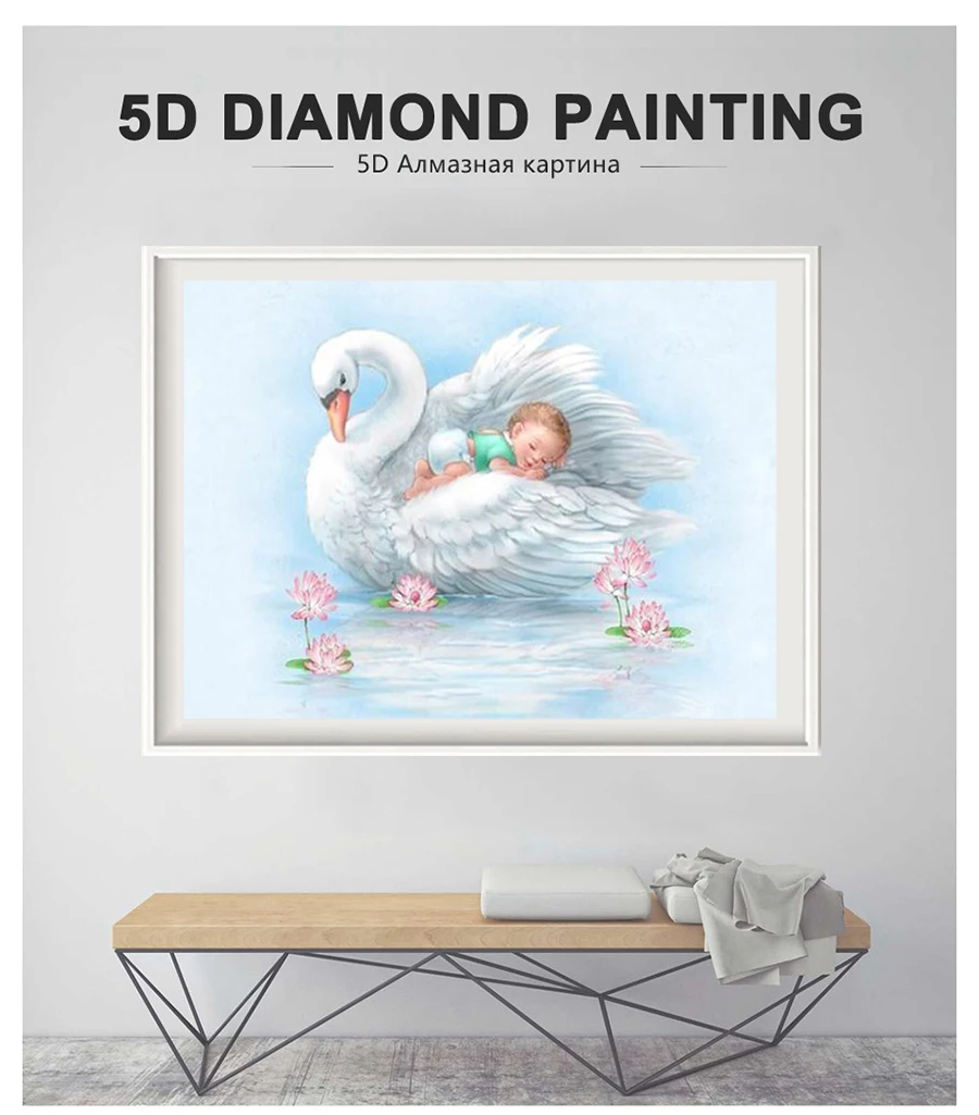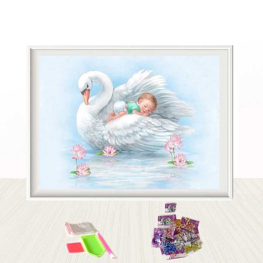 100% Полный 5D Diy Daimond картина с изображением лебедя и младенцев Полный Круглый Стразы diamant живопись вышивка "Детские Лебединое Декор для дома подарок