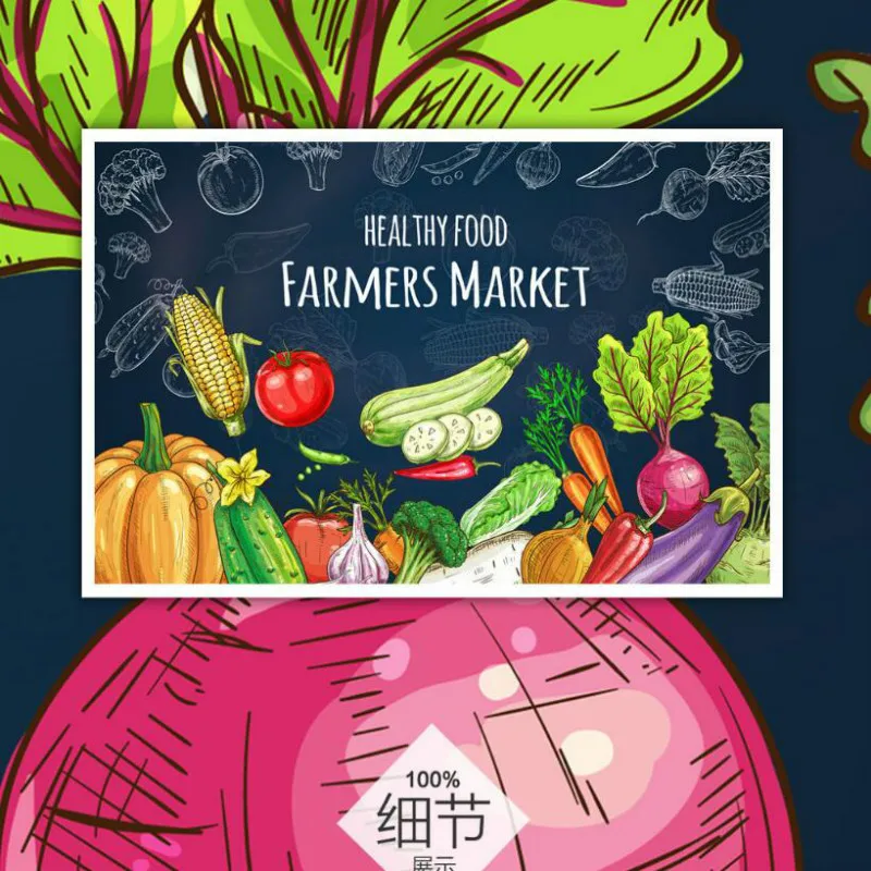 Свежие органические овощи, супермаркет, ресторан, настенная бумага, 3D акварельный текст, может быть изменена настенная бумага