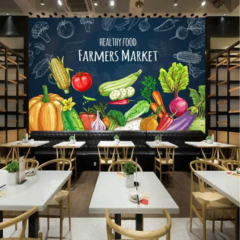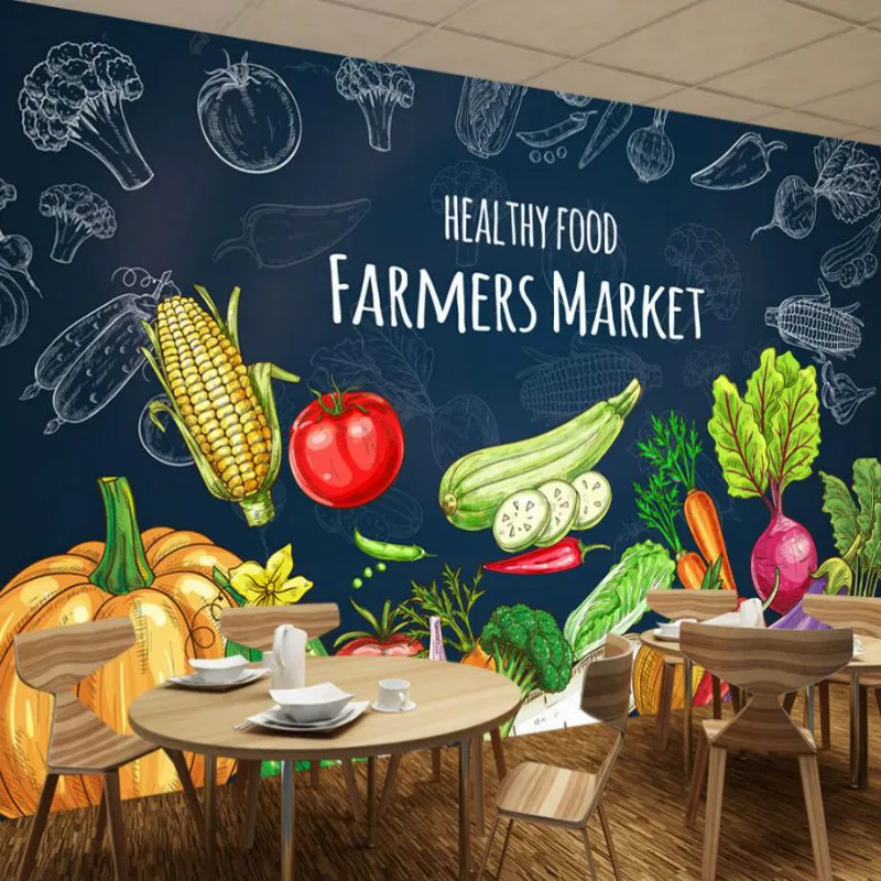 3D рисованная здоровая пищевая настенная бумага для фруктов, овощей, супер рынок, фермерский рынок, настенный промышленный декор, Настенная бумага 3D