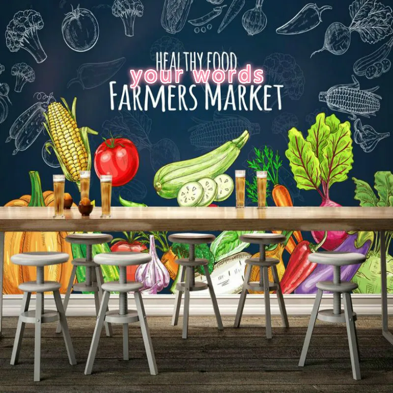 Пользовательское имя здоровая еда настенная бумага Фреска для фруктов овощей супер маркет фермерский рынок стены промышленный Декор настенная бумага 3D