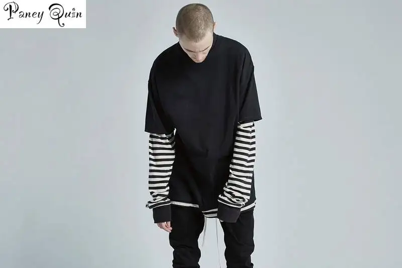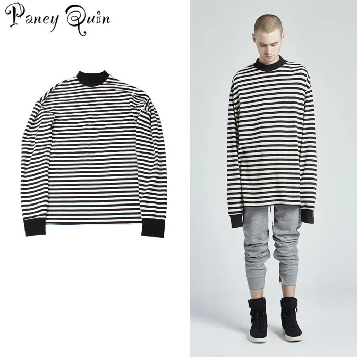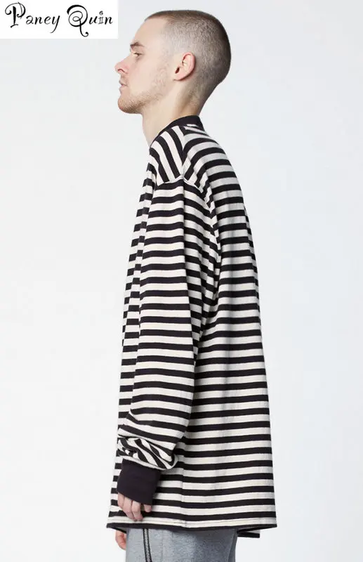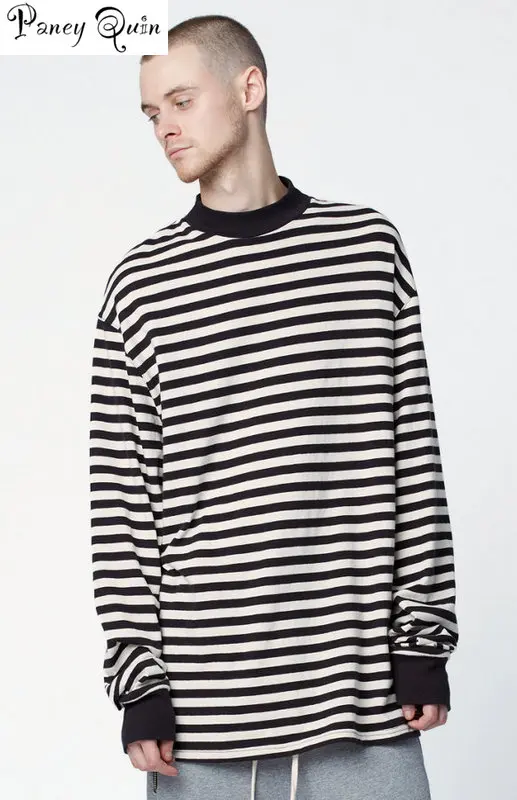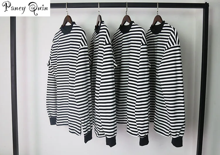 Футболка Мужскаяженская оверсайз с длинным рукавом, свободная рубашка в черно-белую полоску, парная одежда