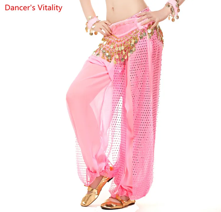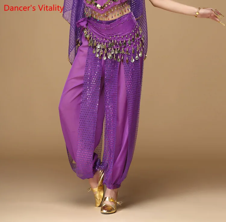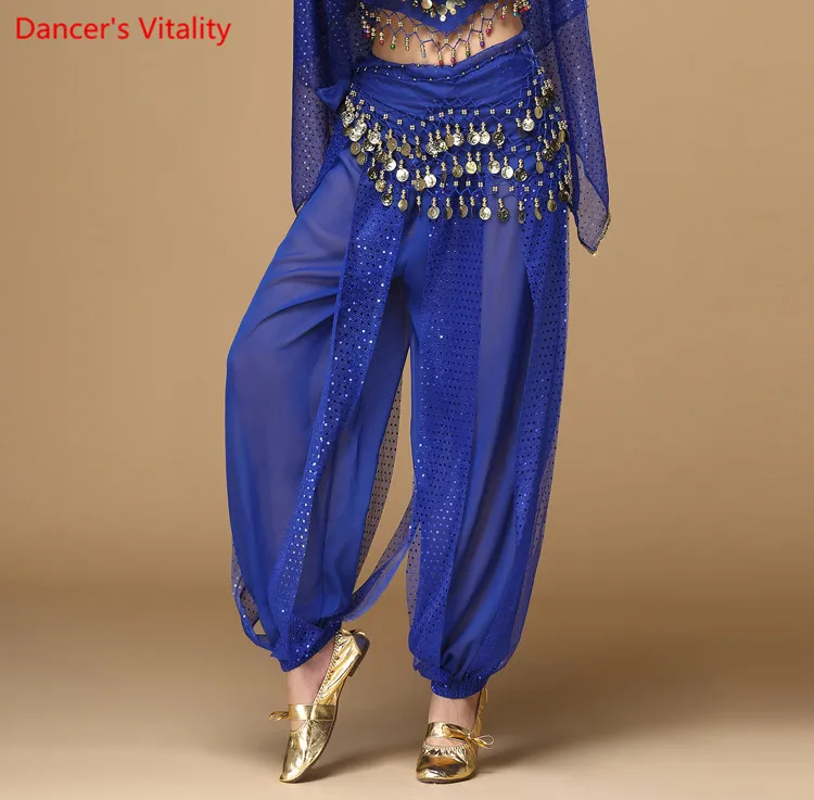 Женские штаны для танца живота, шаровары с широкими штанинами и блестками для выступлений, показов и тренировок по танцу живота