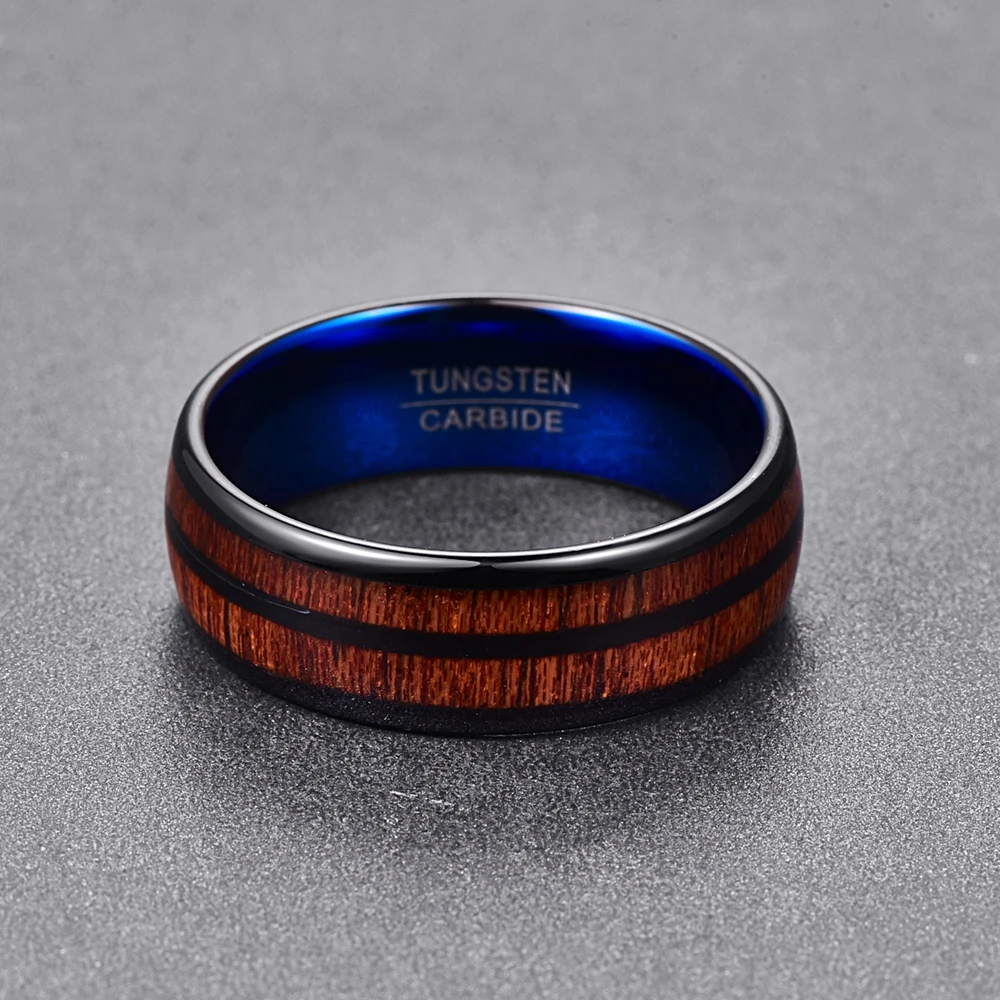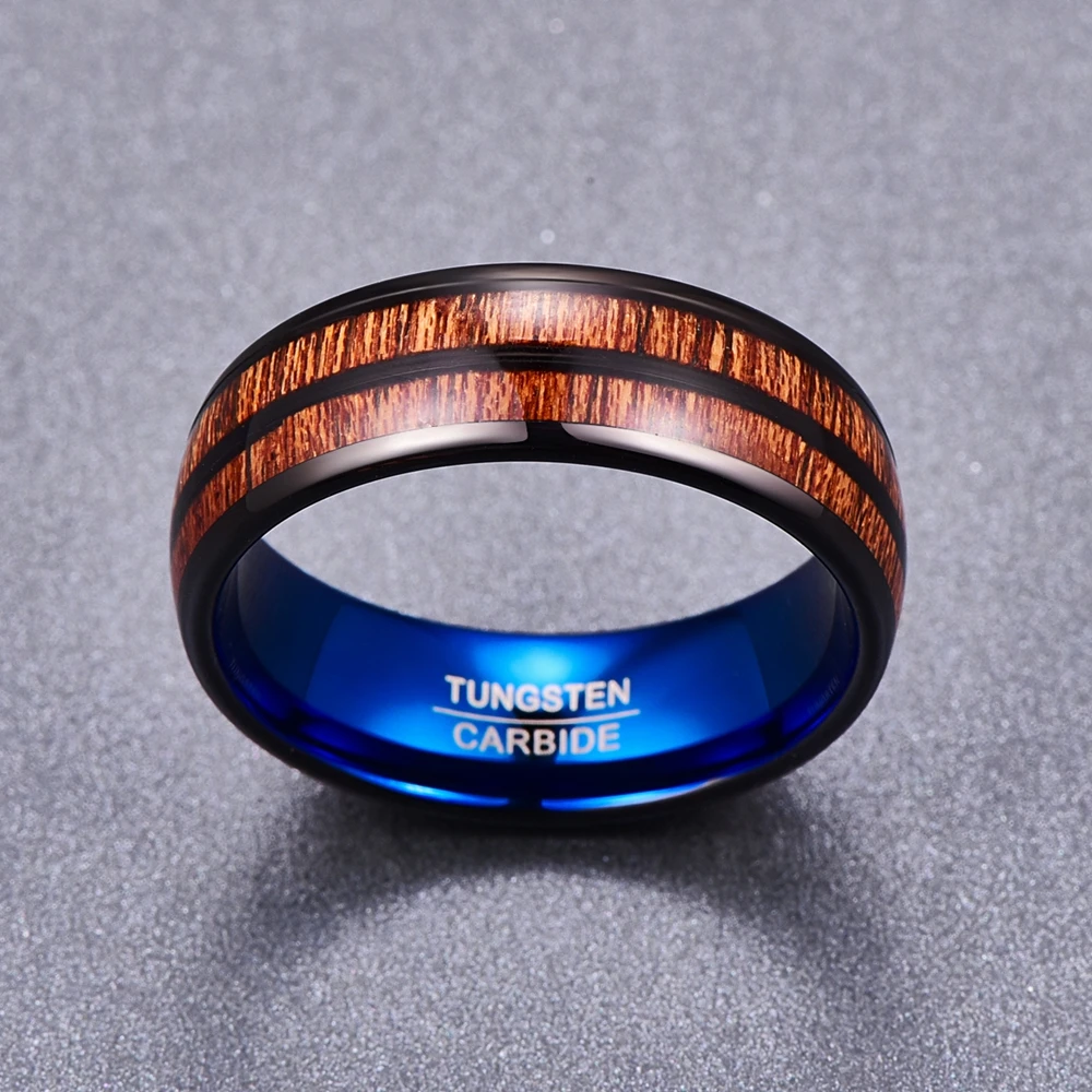 Nuncad кольца из карбида вольфрама 8 мм широкое покрытие черный и синий купол вольфрамовые кольца двойной паз инкрустированные акации дерево вольфрамовое кольцо