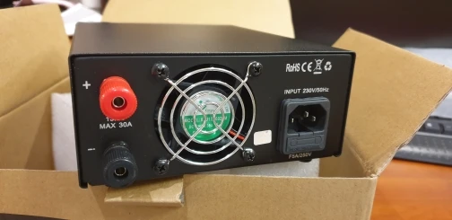 Получил быстро. Проверил на 100 ватах на трансивере. После 2 минут работы трансивера на 100 ваттах включился вентилятор охлаждения. Очень шумный и включается сразу на мах обороты. Вентилятор Потребляет 1.5 Ампера. максимальный съём нагрузки с трансивером 18,7 А. На неделе проверю блок питания на мах нагрузку. По результатам сообщу.