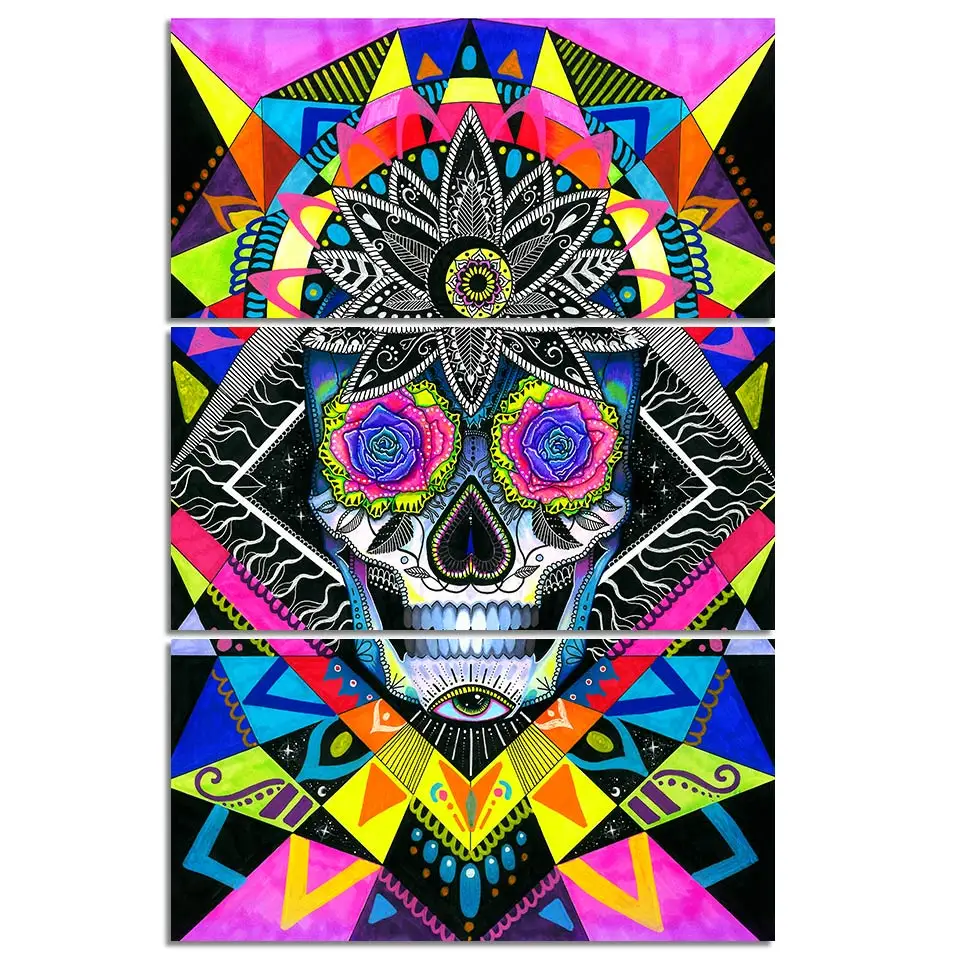 Картина с изображением холодного изображения с изображением сахарного черепа из фальшивой картины HD 3 шт. на холсте настенные картины для гостиной с рамкой декоративные картины