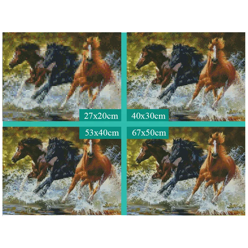 Алмазная живопись "Три лошади", 3D Алмазная живопись, круглые стразы, алмазная живопись, вышивка животных, 100% г.