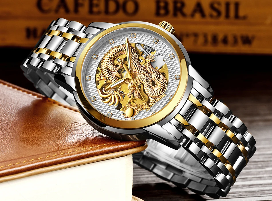 Часы наручные LIGE Мужские автоматические, брендовые Роскошные водонепроницаемые механические аксессуары из нержавеющей стали с коробкой