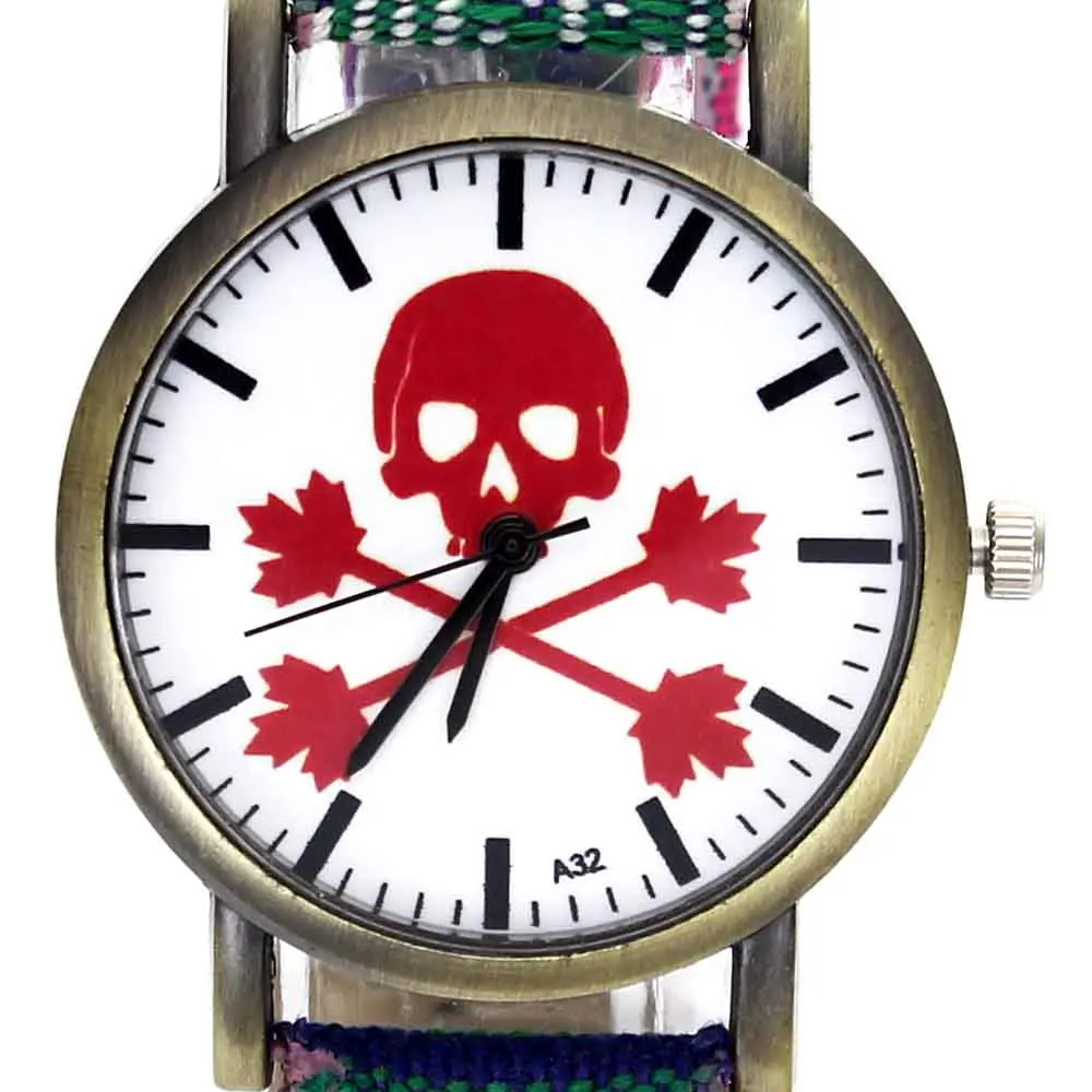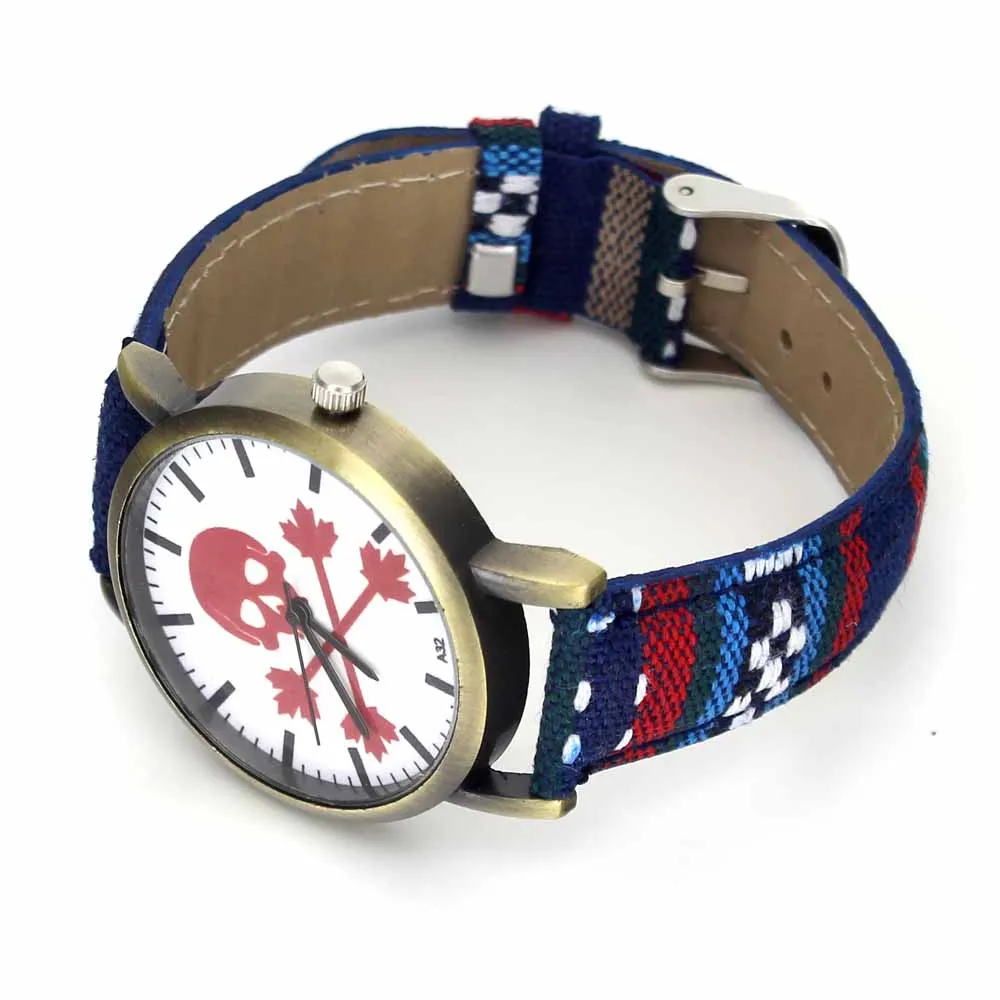 Часы мужские, женские, мужские, наручные кварцевые, с полосками, черепом, скелетом из джинсовой ткани, на Хэллоуин