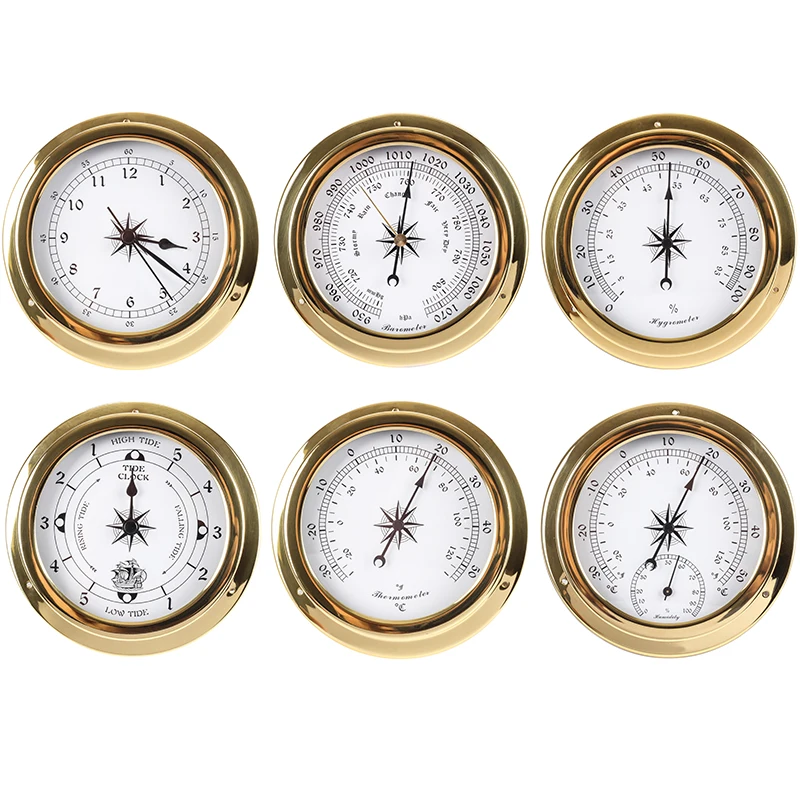 Новинка, 1 шт., латунный чехол, метеостанция, барометр, гигрометр, часы и часы Tid 115 мм, 1-6 модель на выбор B91156
