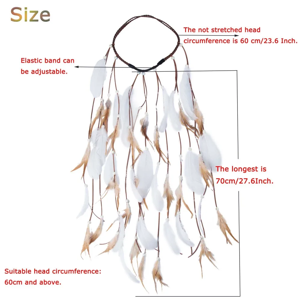 Женская повязка для волос AWAYTR, эластичная повязка на голову белого цвета в стиле бохо, с короной и перьями, 2021, праздничный головной убор