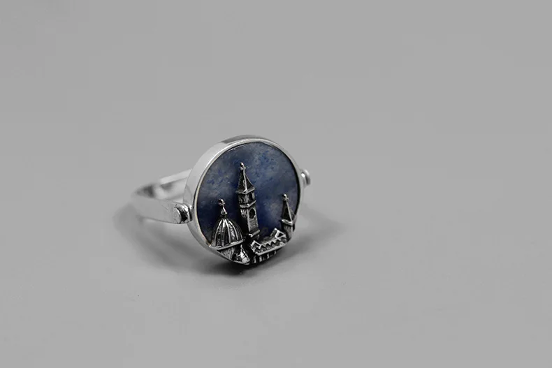Кольцо женское из серебра 925 пробы с синим авантюрином