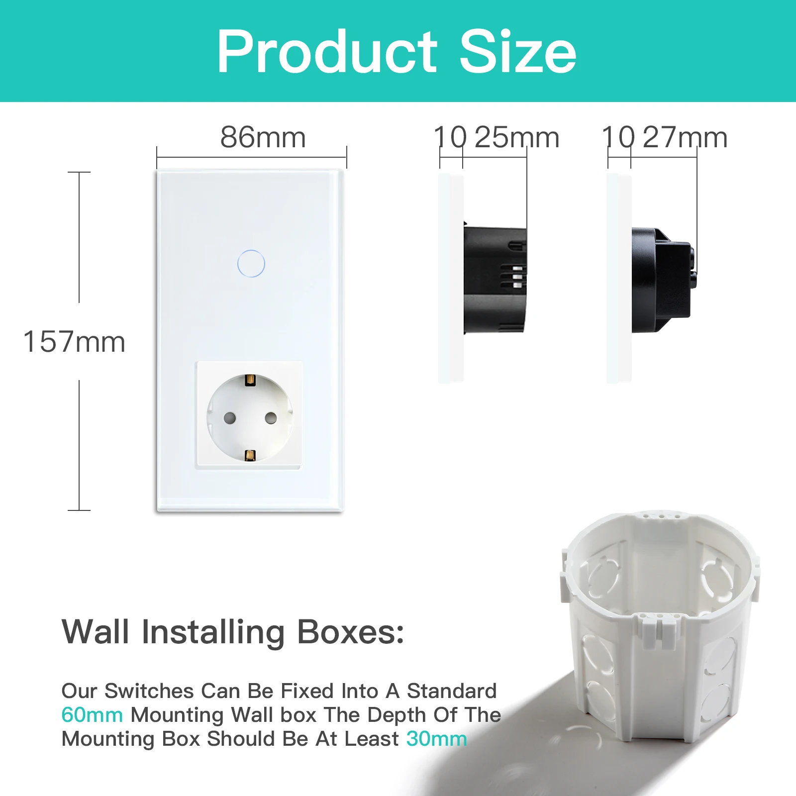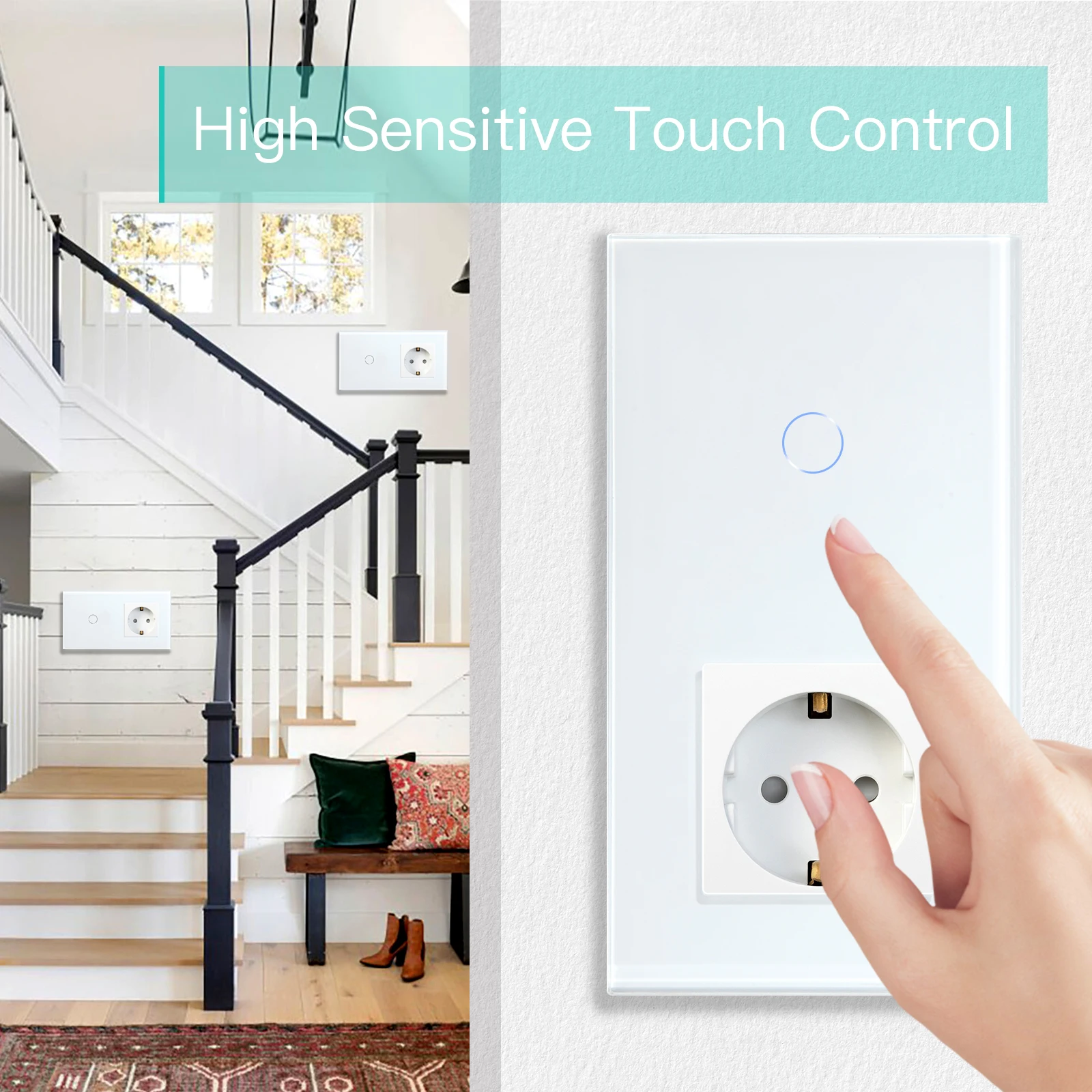 Сенсорный выключатель Bseed Mvava, 1 клавиша, 2 канала, розетка европейского стандарта, черная, белая, золотая, серая, прозрачная стеклянная панель, переключатели, подсветка