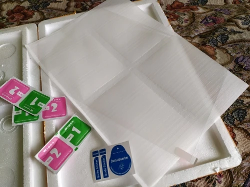 Наконец пришла моя бронепленка. Сейчас только одна проблема как ее идеально наложить, чтобы волоски и пылинки под нее не попали. Отдельный респект за контейнер из пенопласта, я его минут 10 раскрыть не мог. Советую покупать, защита от рукожопства почты России 100%