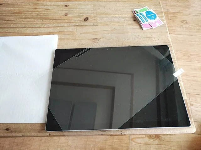 Идеально подходит для Surface pro 4, применение не должно вызвать никаких проблем, если у вас есть предварительный опыт с протекторами экрана из закаленного стекла для телефонов или планшетов. Экран был безопасно упакован в пенопласт и доставлен менее 2 недель. Рекомендуется.