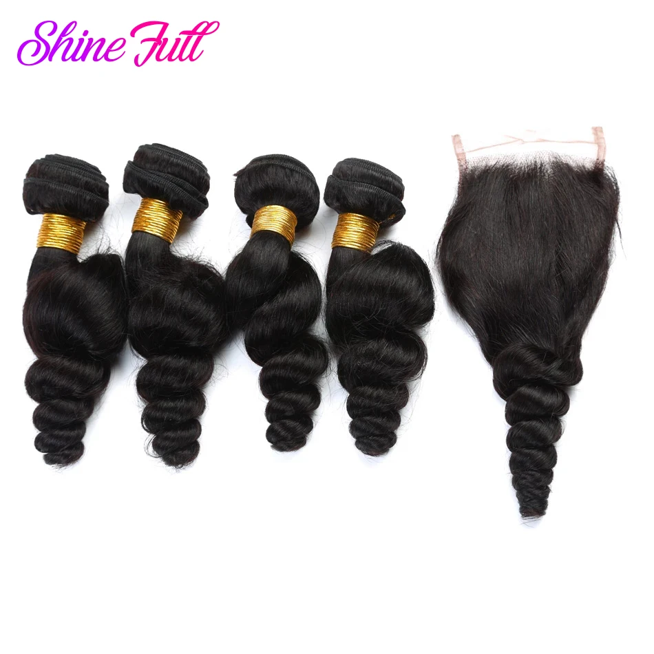 Бразильские волосы, волосы, свободные волнистые волосы, 4 пряди волос с застежкой, 4x4, индивидуальные 100% человеческие волосы от 8 до 28 дюймов, не Реми