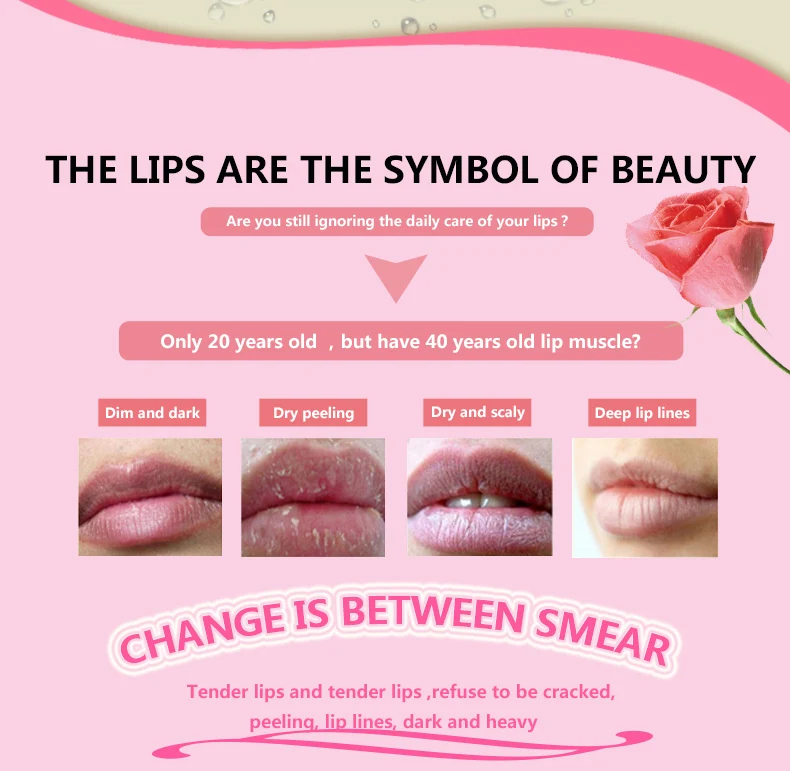 Содержит розовую эссенцию и увлажняющие ингредиенты, питает полипептид, разбавляет губы, мышцы губ, образует питательную пленку, успокаивает, увлажняет губы, осветляет аромат пасты Qingyang, оттеняет цвет губ, гладкая и нежная кожа вокруг губ, очаровательные губы.