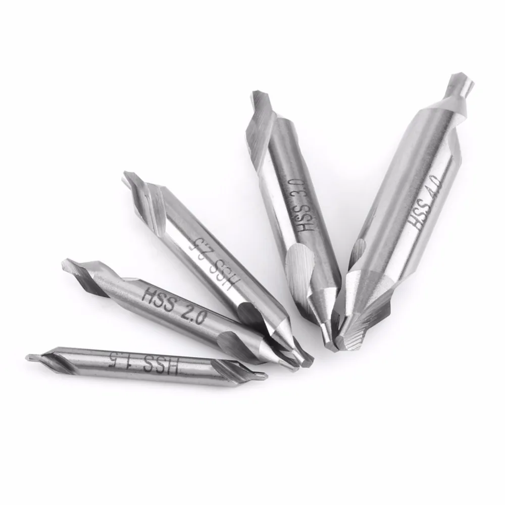 5 шт. сверла из быстрорежущей стали, комбинированные центральные сверла, зенкеры, угловые биты 60 градусов, набор инструментов 1,5 мм, 2 мм, 2,5 мм, 3 мм, 4 мм, инструменты, токарный станок