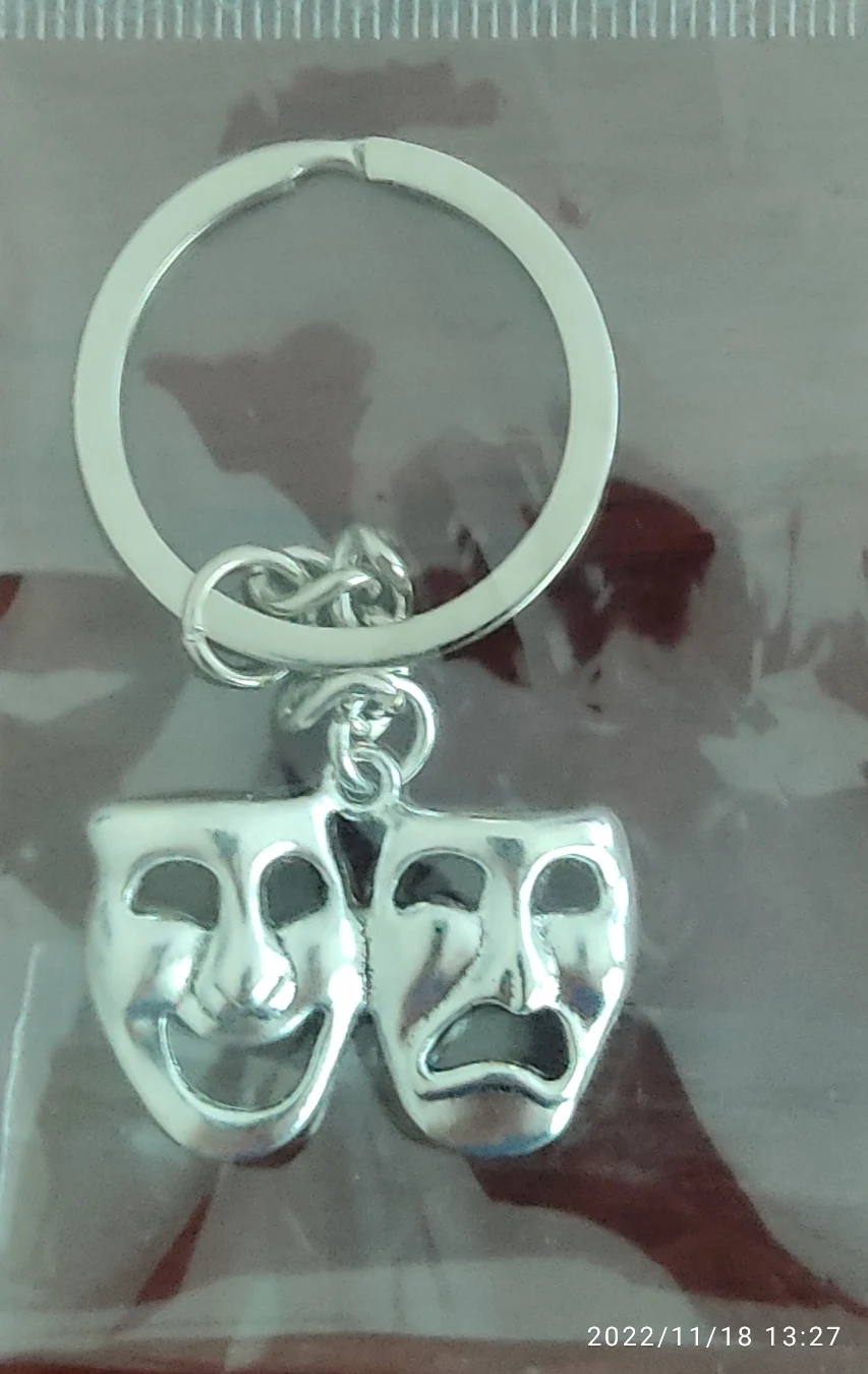 Модный брелок для ключей 30 мм, металлический брелок для ключей, ювелирное изделие, античная бронза, серебряное покрытие, браслет комедия трагедия маска, 31x23 мм, подвеска