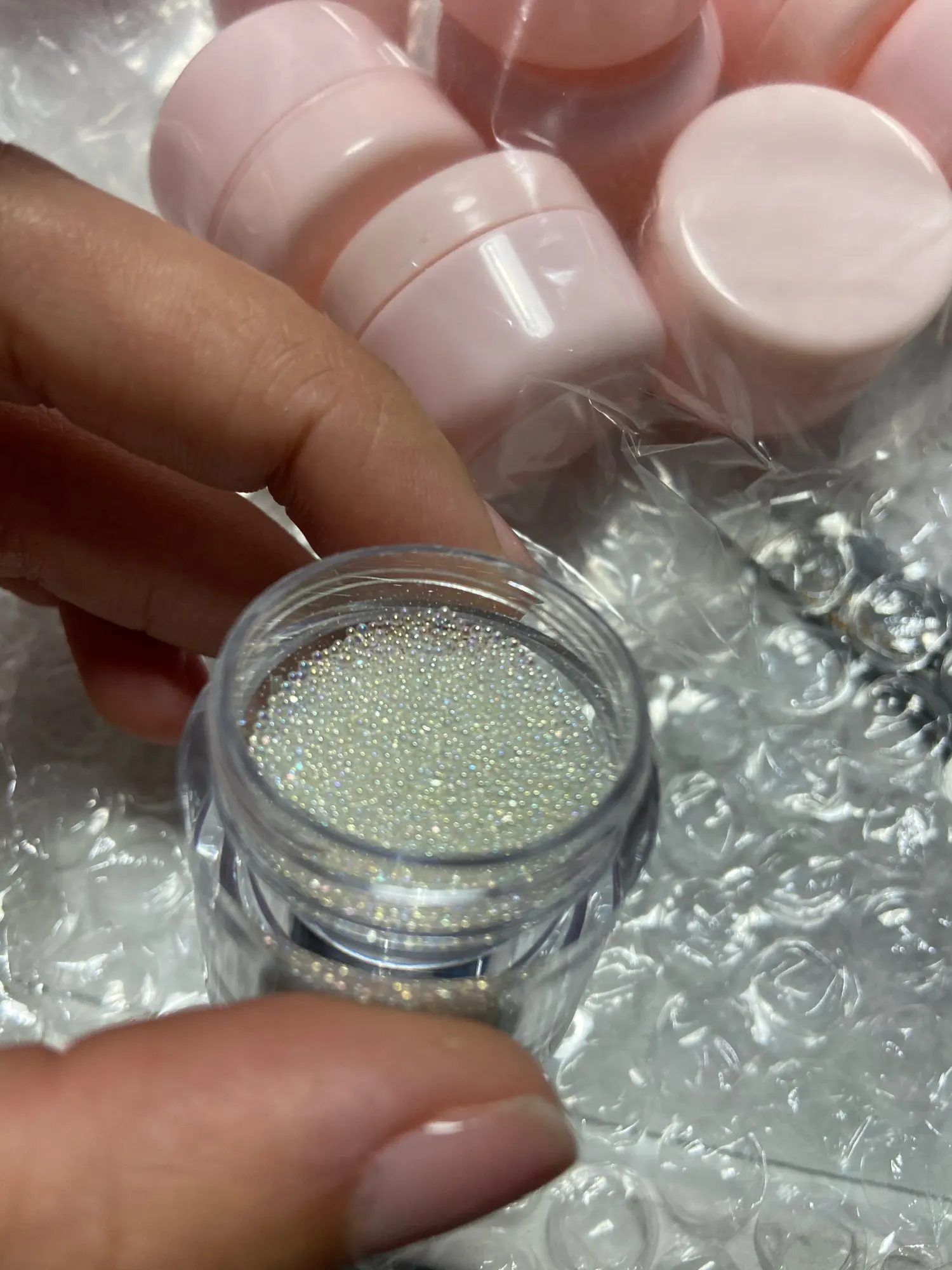 заказала 27 декабря, а получила 13 февраля, безумно мелкие, очень мелкие крупинки))). в баночке их достаточно много, баночка почти полненькая, в работе не пробовала((( упаковано нормально, стандартно. товар отслеживался. с продавцом не общалась, не было нужды.