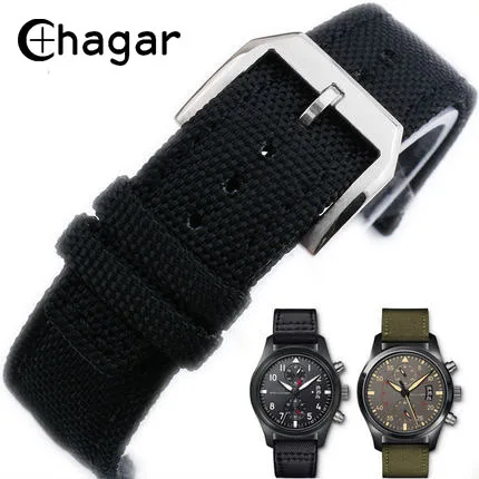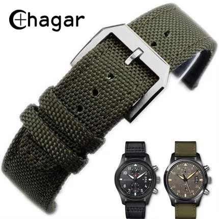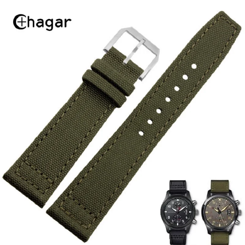 Ремешок для часов, наручные часы с кожаным ремешком, 20 мм, 21 мм, 22 мм, армейский зеленый, черный, нейлоновая ткань, ремешок для часов, мужские часы