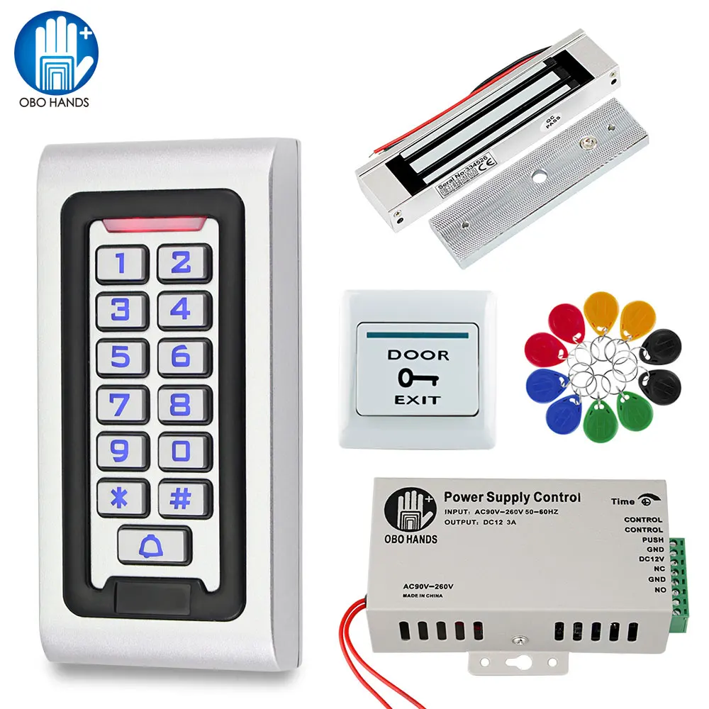 Посылка включает в себя: Клавиатура контроля доступа + блок питания + 180 кг Электрический магнитный замок + кнопка выхода + 10 брелоков