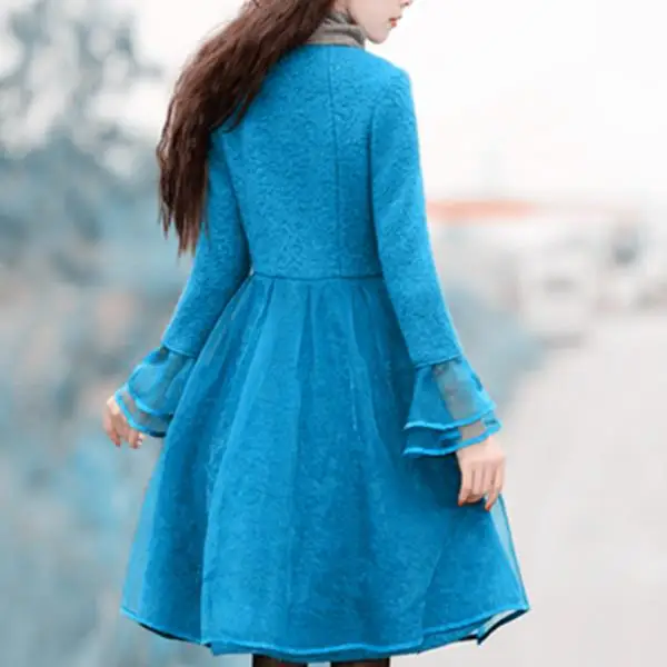 Женское осенне-зимнее шерстяное пальто с длинным рукавом и круглым вырезом