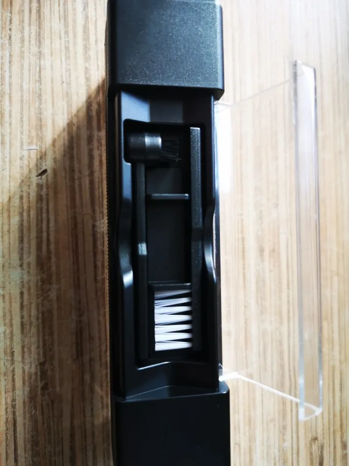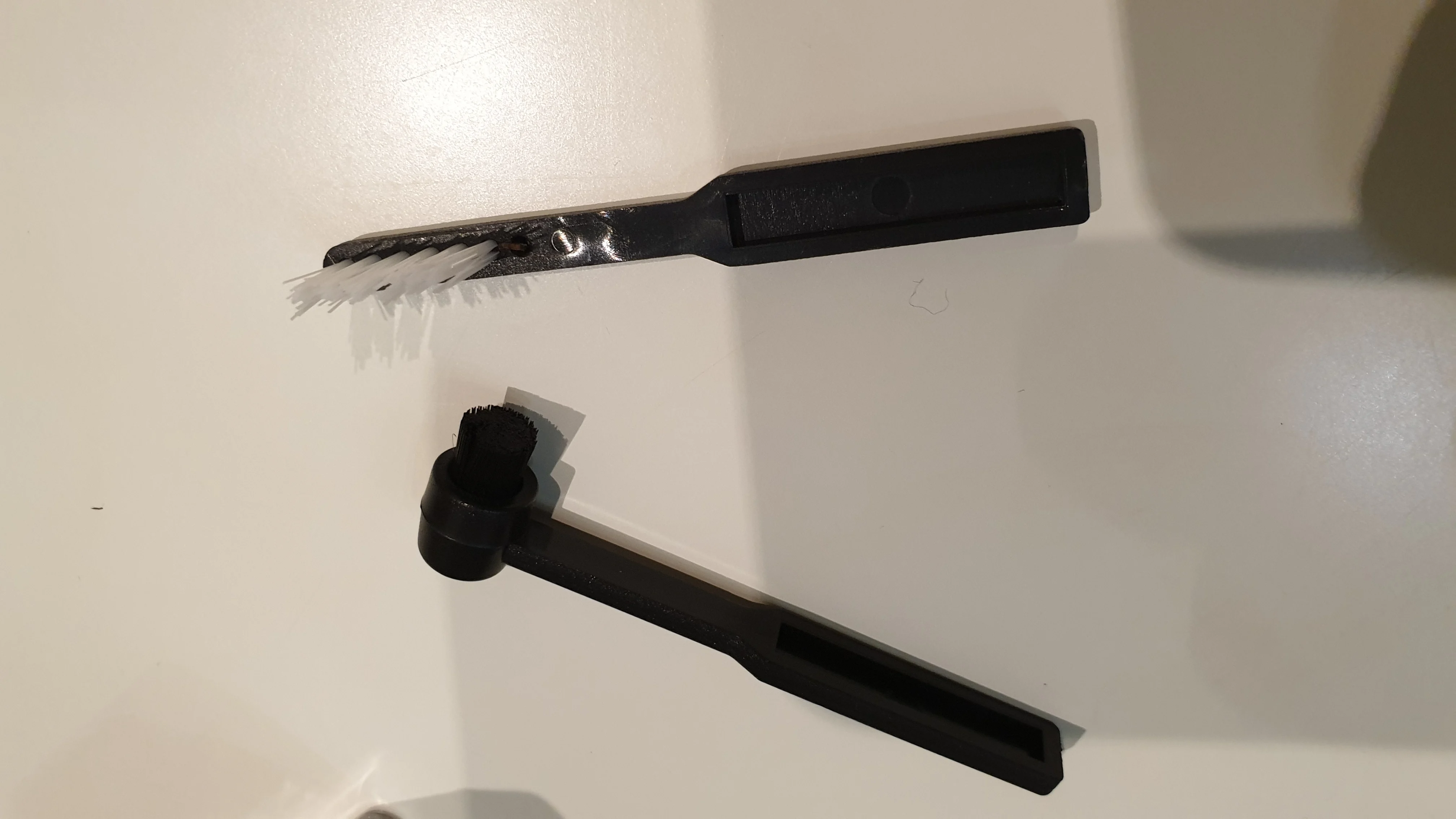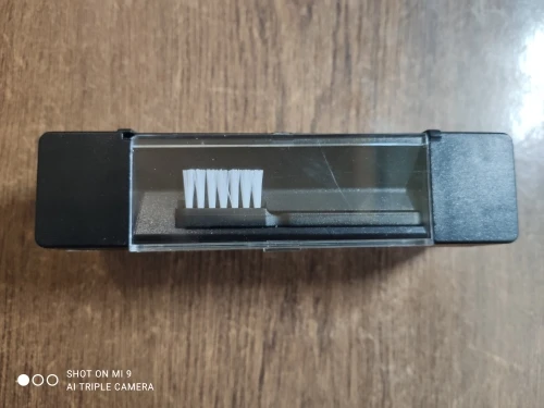 Прекрасная мягкая щётка. Прекрасно лежит а руке. Наличие отдельной маленькой щёточки для чистки иглы очень радует.