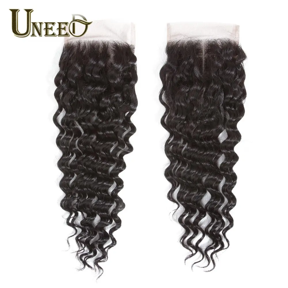 Необработанные волосы глубокая волна Кружева Закрытие 4 "X4" малазийские Remy человеческие волосы закрытие швейцарское кружево Бесплатнаясредняя часть может сочетаться с пряди