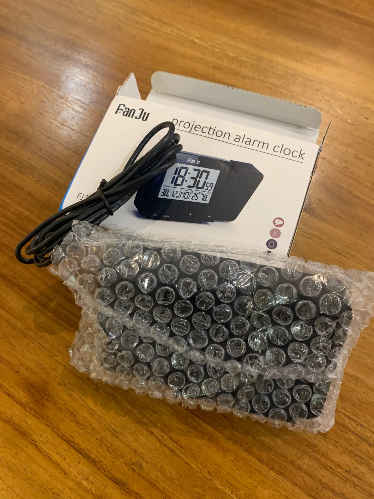 пришло быстро, качество достойное, есть кабель для питания от ЮСБ Проекция бледновата, при дневном свете не видно, но это компрмисс между потреблением и видимостью, наверно.Влажность и температуру тоже показывает. В целом доволен.