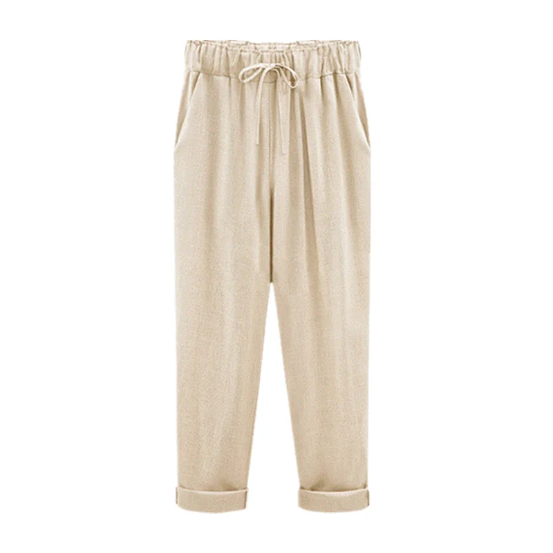 Брюки-карандаш женские из хлопка и льна, модные повседневные штаны в комплекте с широким поясом, карамельные цвета, размера плюс, M-7XL, 2020