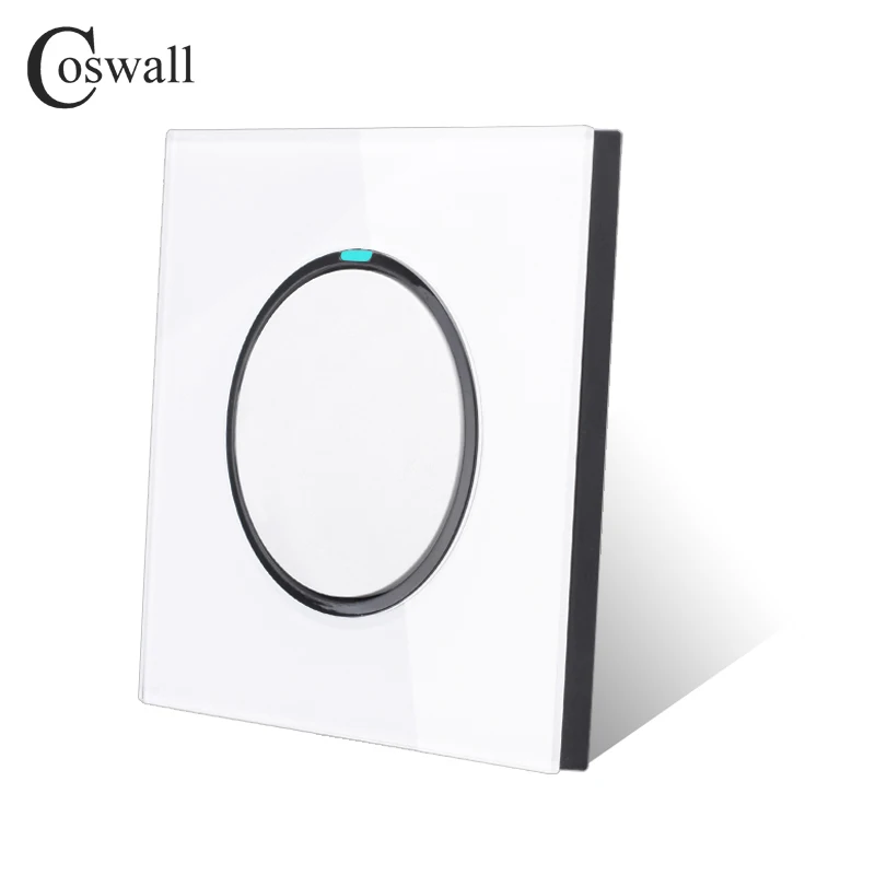 Настенный выключатель Coswall, 1 комплект, 1 выключатель, светодиодный индикатор, панель из хрустального стекла, белый, черный, серый, золотой, серия R11