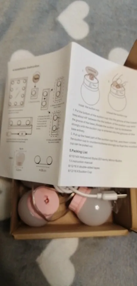 товар доставлен в г.Пермь за 10 дней.посылка отслеживалась. коробка пришла вся помятая, но содержимое целое. в комплекте идут наклейки и присоски. очень рекомендую сначала попробовать оба способа крепления,а только потом крепить на все лампочки.потому что я выбрала присоски,но на поверхности зеркала они плохо держались,пришлось отдирать присоску от лампочки-это очень сложно! свет хороший! меня устраивает! он и достаточно светлый,но и не ослепляет во время нанесения макияжа. я очень довольна,спасибо!
