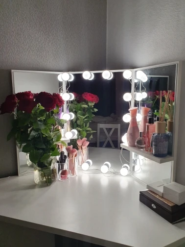 Блестящее освещение, очень яркое Планирует поставить его на туалетный столик, надеюсь, вы будете красиво презентовач