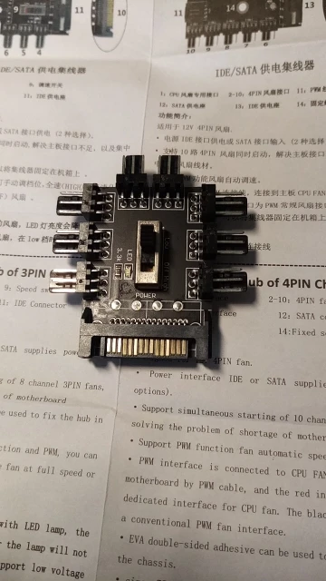 Разветвитель TISHRIC, 1 на 8, 3 контакта, для вентиляторов, Pwm, Sata, Molex, кабель для майнинга ПК, 12 В, источник питания, охлаждающий адаптер контроллера скорости охлаждения