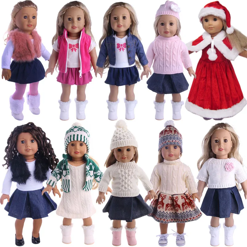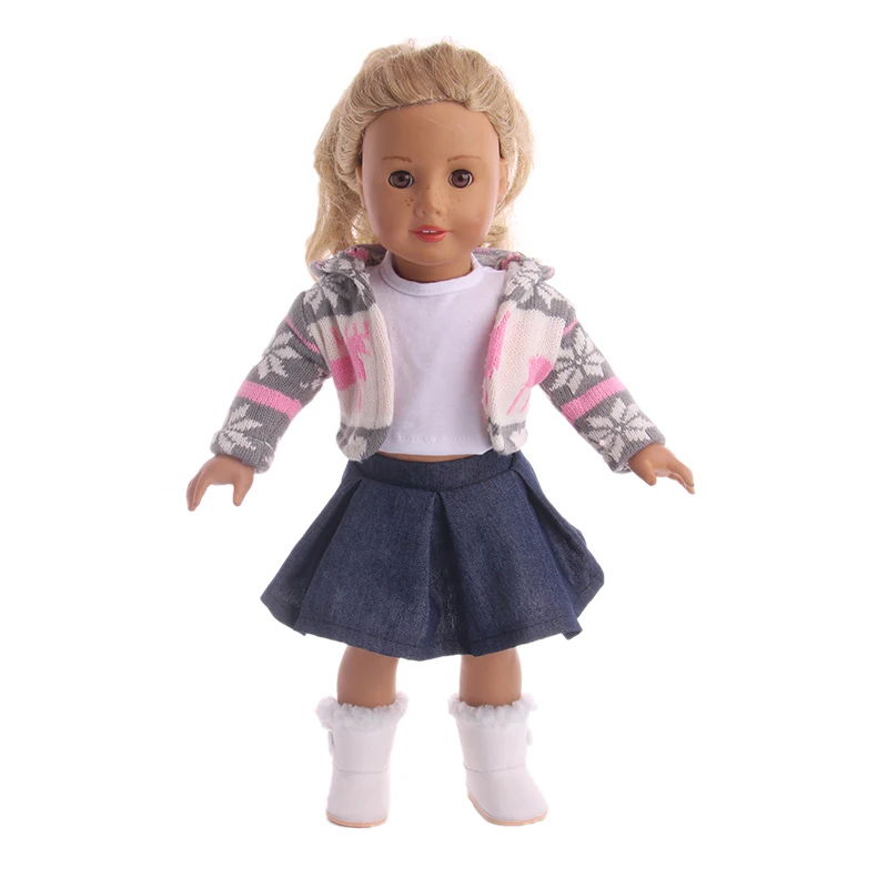 Кукольная одежда, 3 шт.компл., футболкашапка + вязаный свитер + юбка, костюм для новорожденных, 18 дюймов, 43 см