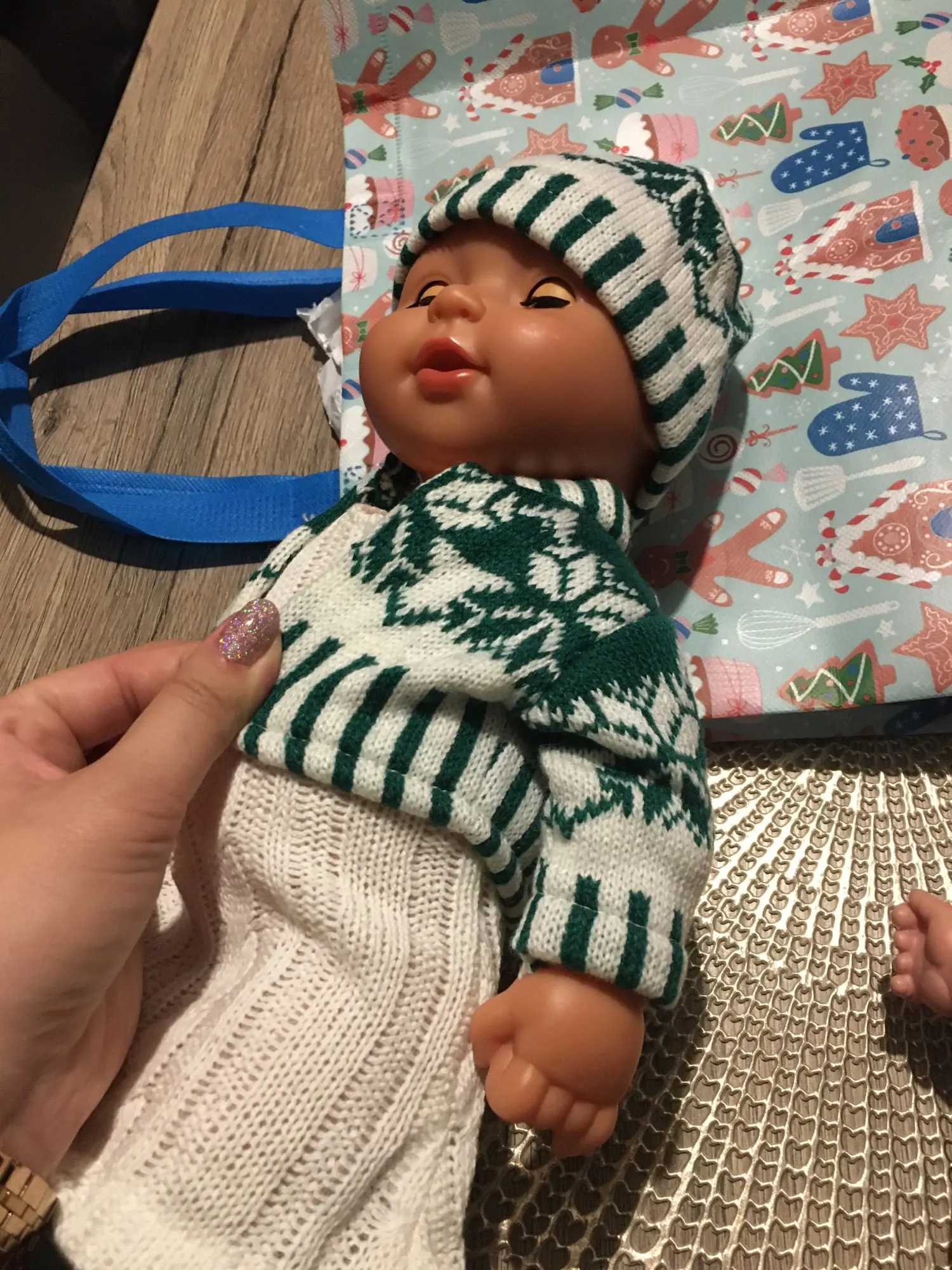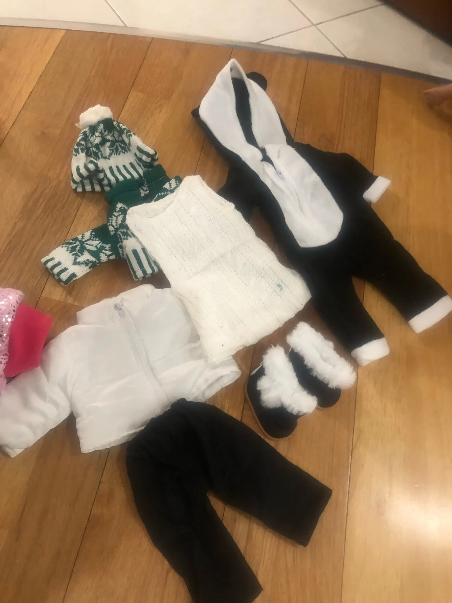 Прекрасный, красивый, мягкий костюм для куклы 43 см. Никакого постороннего запаха, никаких лишних ниток. Но обратите внимание, что комплект идёт без ботинок. При заказе была фото куклы с ботинками. А комплект состоит из платья, шапки и кофточки. Доставка около 3 недель в Московскую область. Рекомендую продавца и этот наряд.