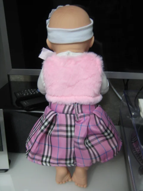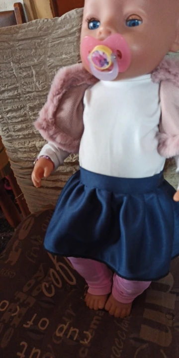 Костюм хороший Качество юбки очень хорошее, юбка из плотной ткани, изнутри обработана . Но на пупса 40 см немного великовата по ширине пояса, если под юбкой будут штанишки то нормально. На сайте так и написано что на куклу 18 дюймов а у меня пупс 40 см - 16 дюймов . А вот меховая безрукавка как мне показалась, маловата, но качество тоже хорошее трикотаж изнутри обработан. Правда ленты для моего пупса длинны, но как я уже писала костюм на пупса 18 дюймов . Белая кофта трикотаж застегивается сзади, что удобно, изнутри кофта не обработана. Юбка и жилет в жизни выглядят даже лучше чем на фото. Доставка в течении 3 х недель. Рекомендую.