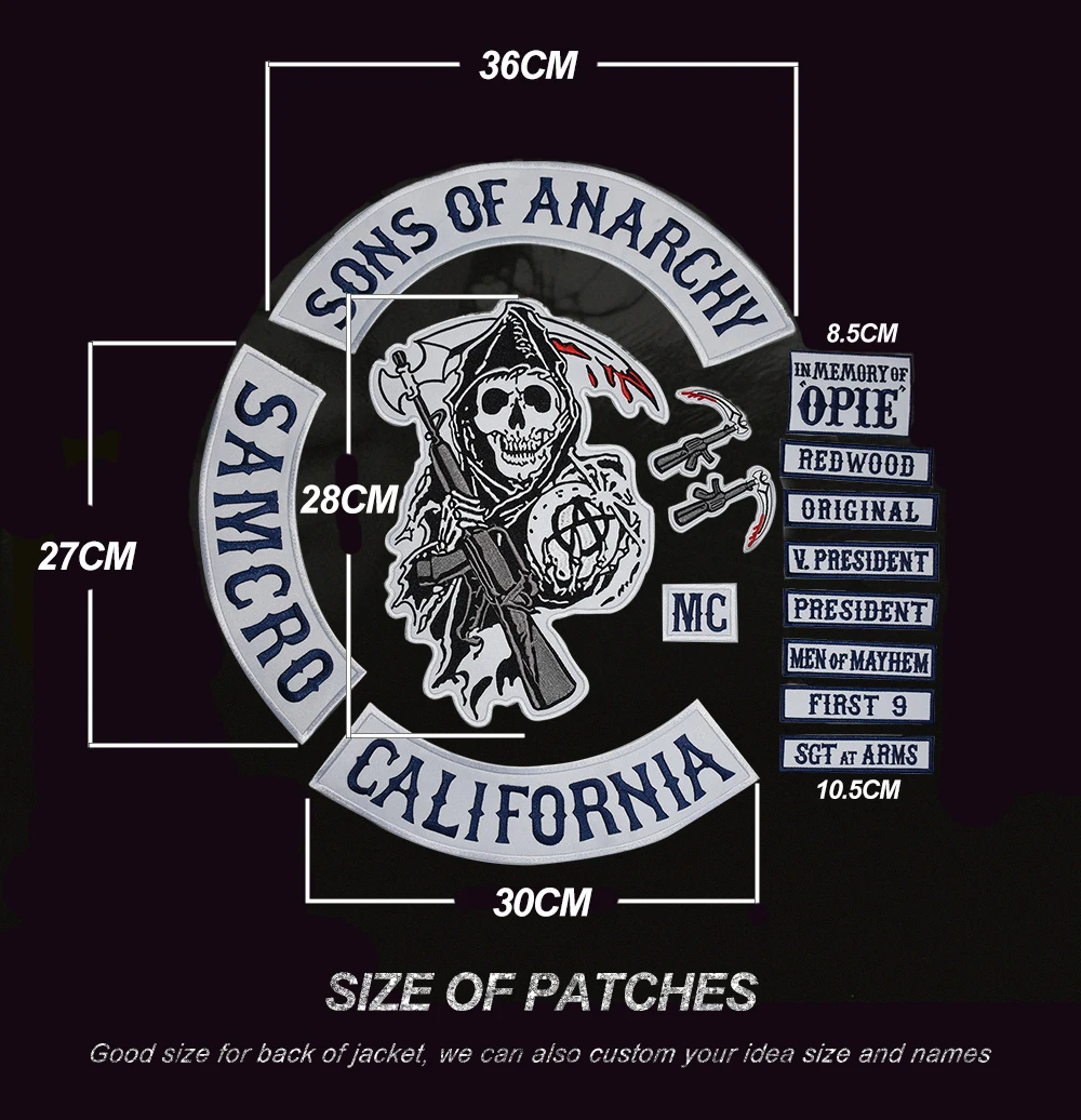 Нашивка с изображением сынов анархии, вышивка утюгом на мотоцикле, персонализированное рокерское имя, индивидуальная нашивка OPIE, одежда для байкеров аппликация