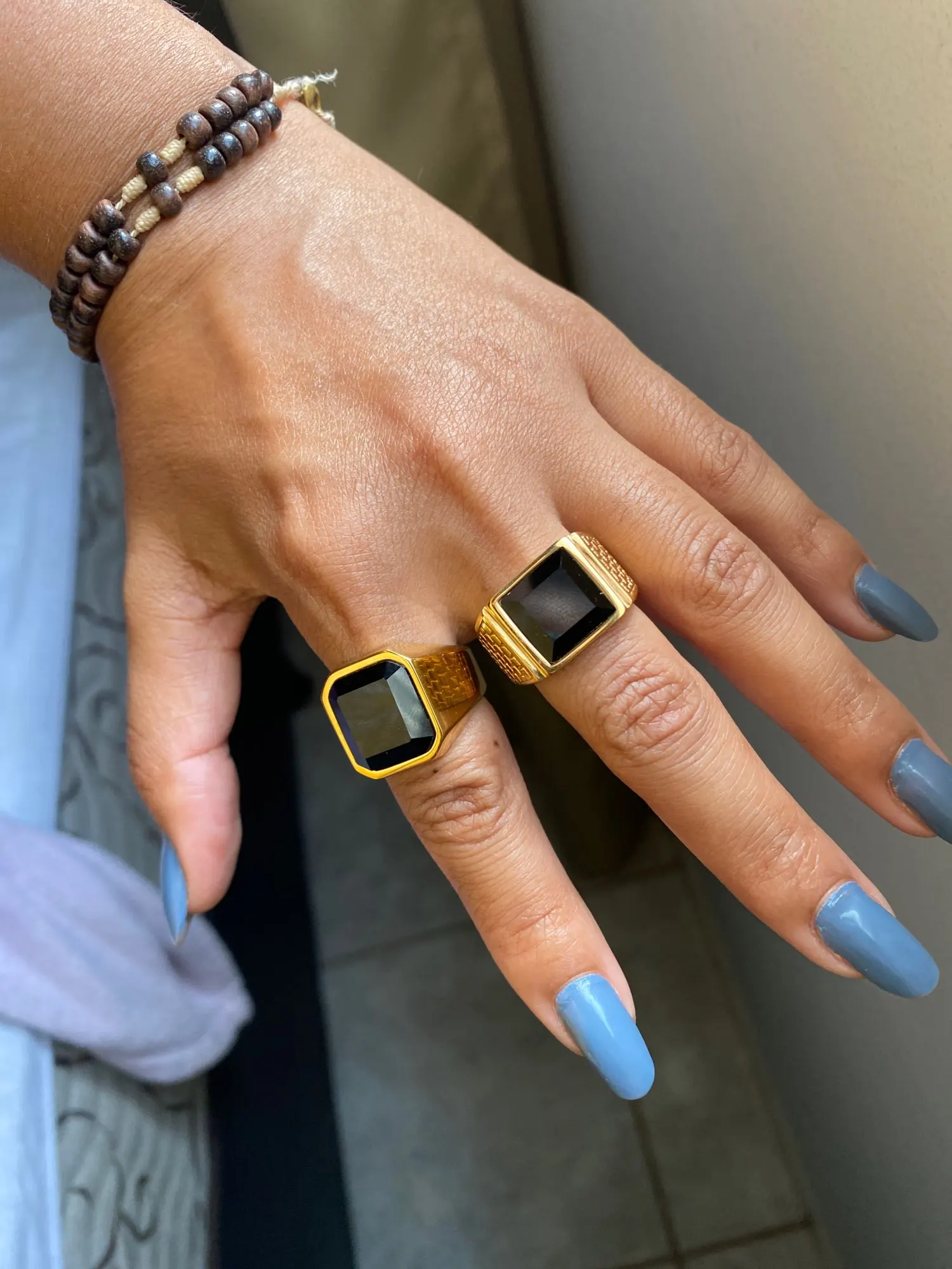 Классические мужские из нержавеющей стали черного цвета кольцо золотое с камнем в европейском и американском стиле