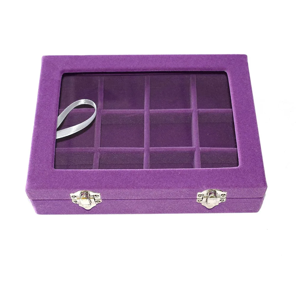 Характеристики Изделия12 Grid Velvet Glass Jewelry Ring Display Organiser Box