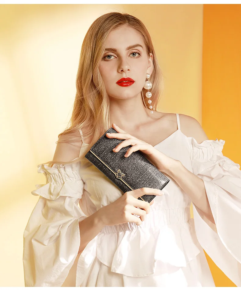 Женский кошелек FOXER, черный длинный кошелек из спилковой кожи, с отделением для монет и карт,