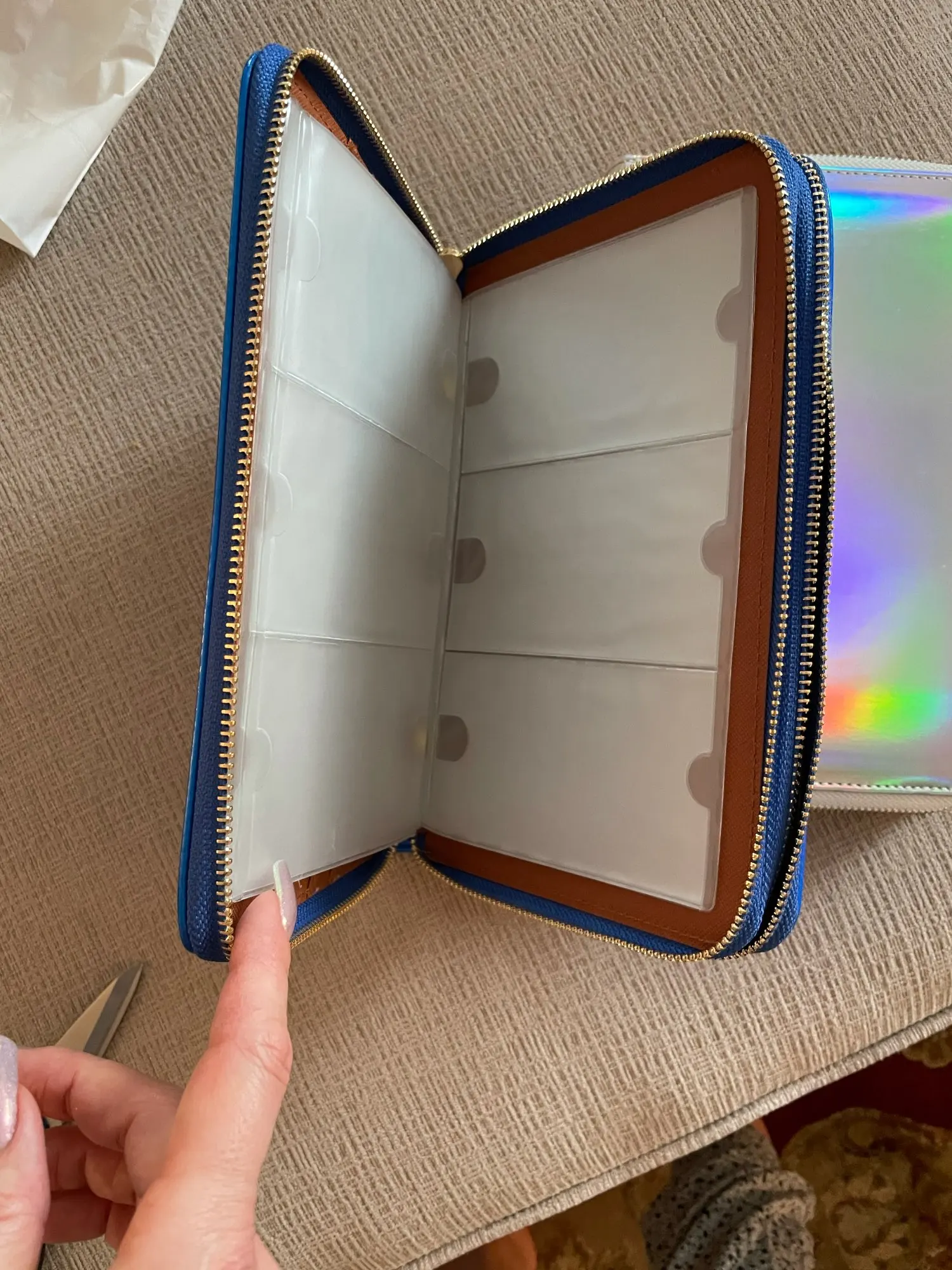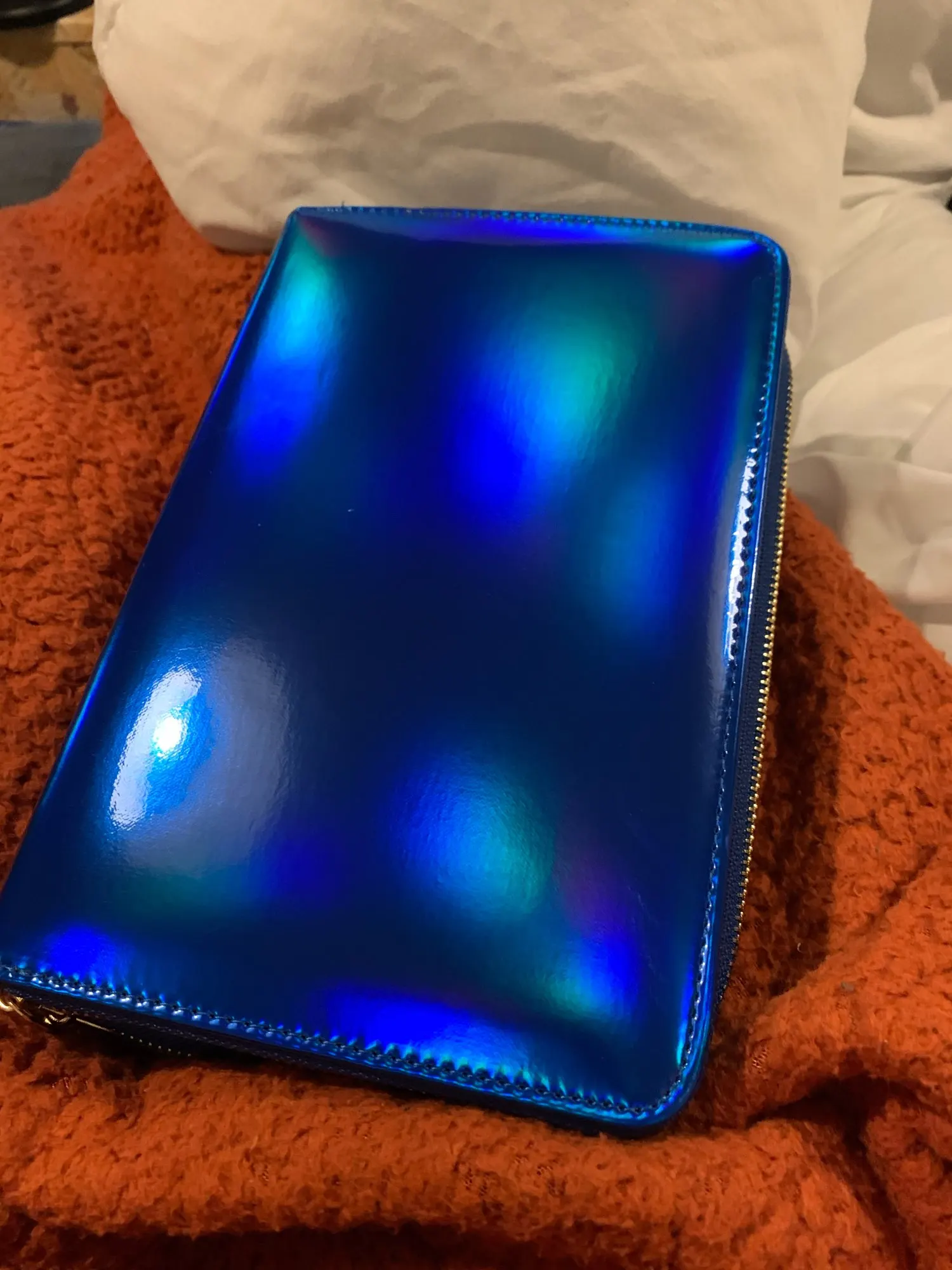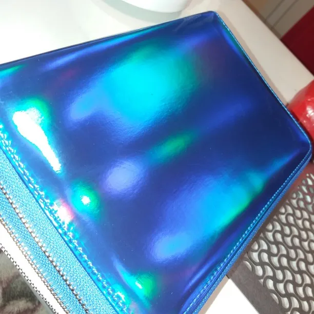 Холдер пластин для стемпинга яркого голографического синего цвета. Холдер разделен на две части. Для больших пластин. И для пластин маленького размера. Очень удобный в использовании. Пришел В Украину Днепропетровскую область за 13 дней. Пришел Новой почтой. Это пожалуй лучшее что я видела. Всем рекомендую