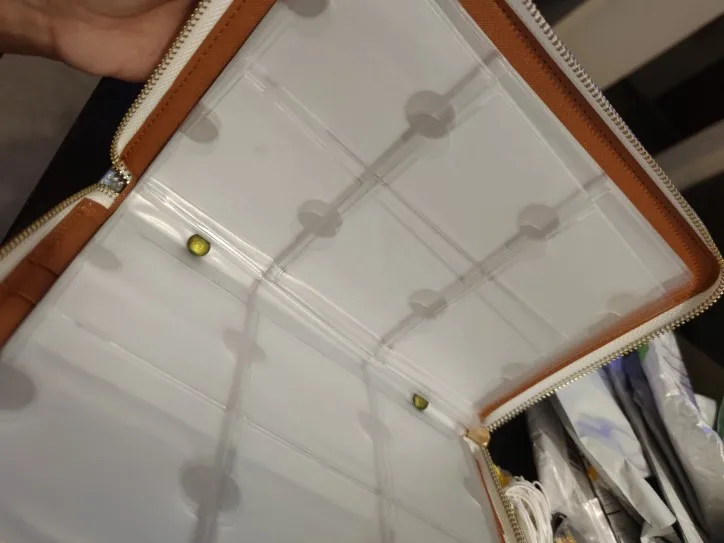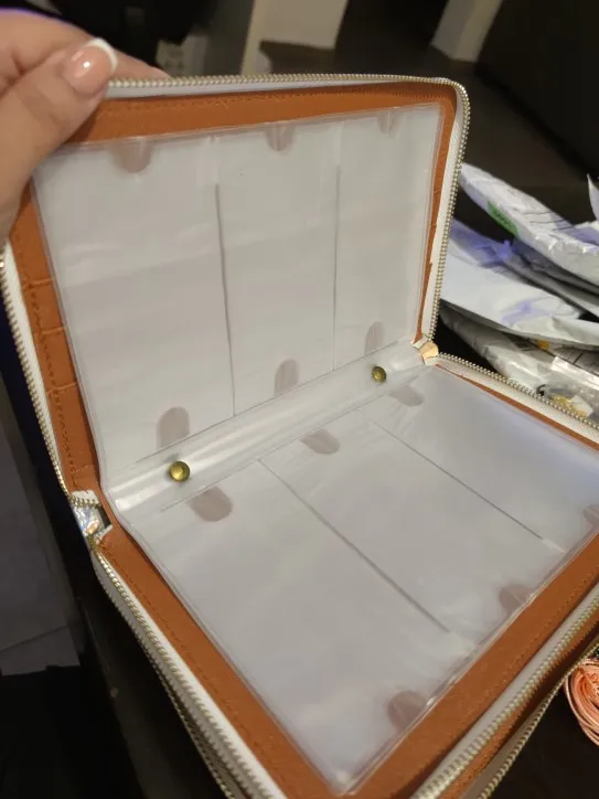 Холдер пришёл с вмятинами с двух сторон, как будто машинкой прострочили, Спасибо не насквозь, брала на подарок, стоит не три копейки, могли бы смотреть что и как отправляют. Сам холдер большой, тяжёленький даже без пластин, молнии работают, мне кажется неудобно будет вытаскивать пластины, когда он заполнится , но могу ошибаться
